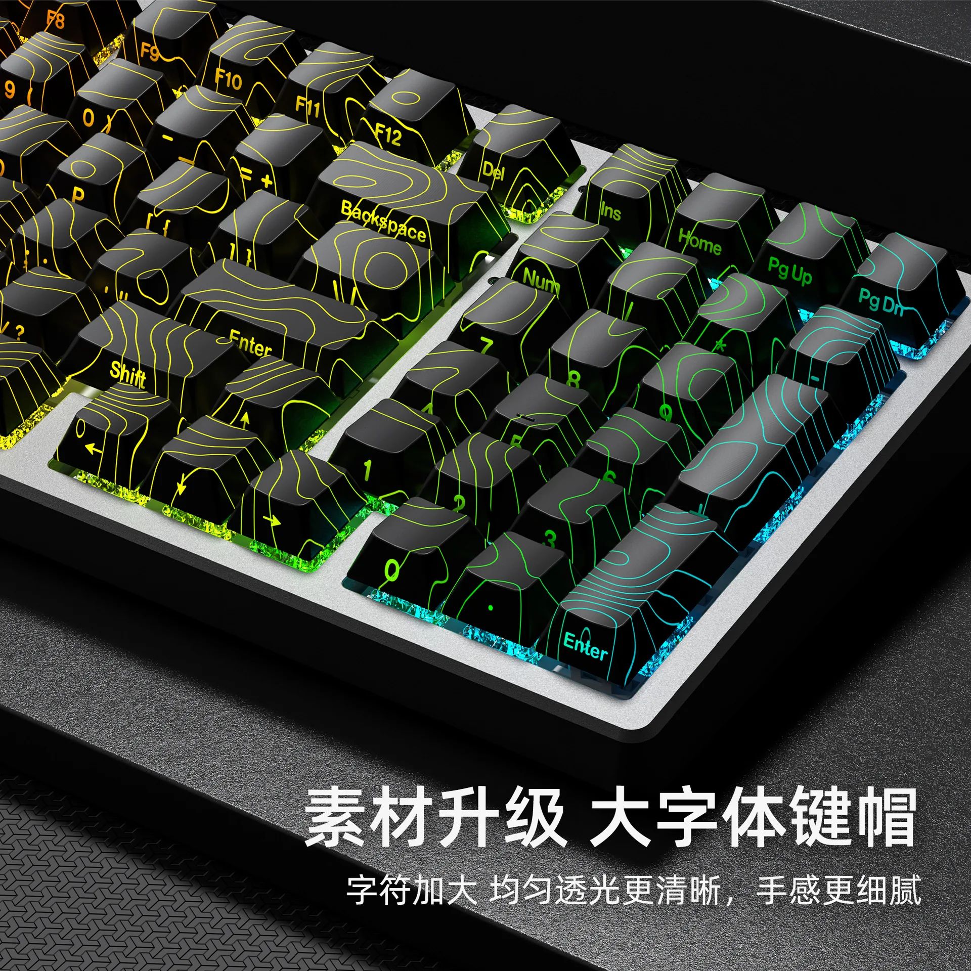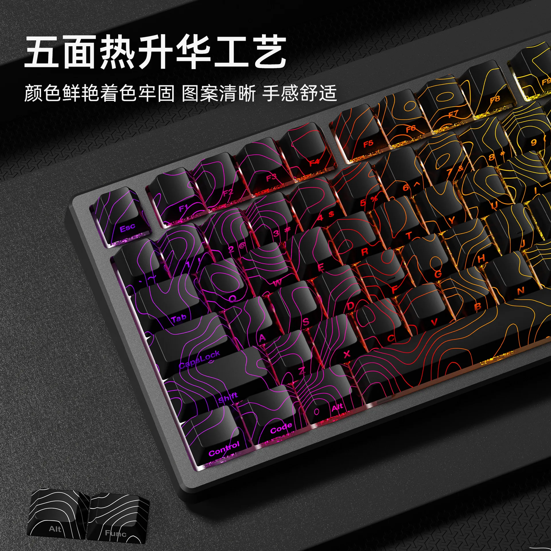 Cable alto 1.0T línea transparente lado tallado tapa de llave de cereza PBT 128 para interruptor MX HI75 HI8 68 F99 104 64 teclado mecánico de arranque