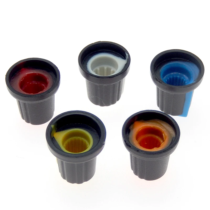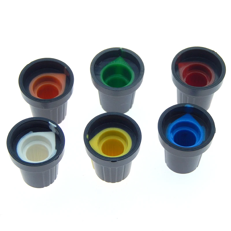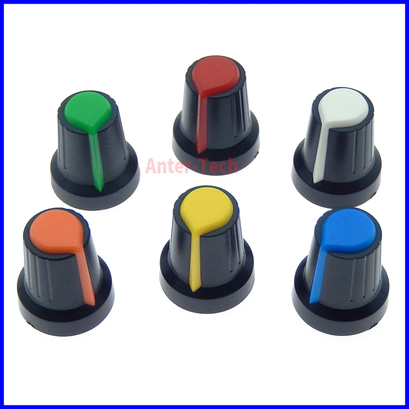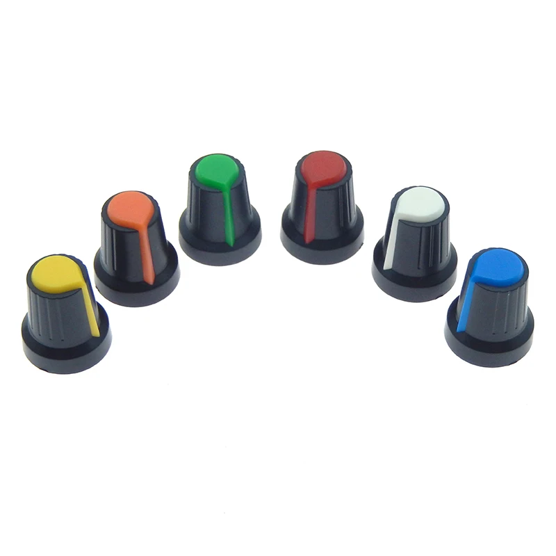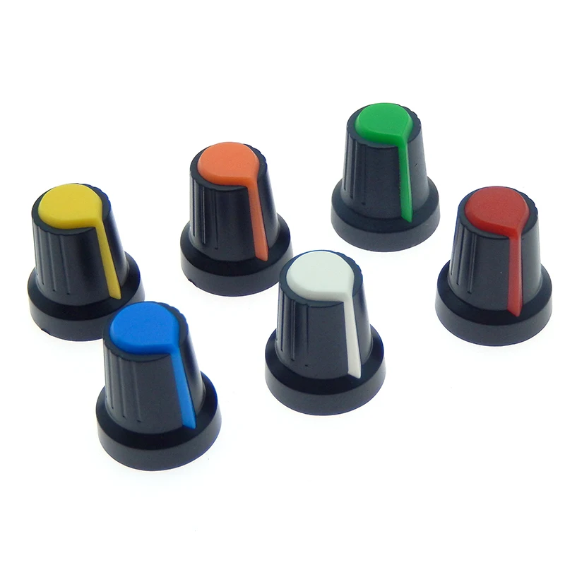 Comprar Tapa de perilla de interruptor de potenciómetro WH148, perilla de plástico, mango de ciruela, 15x17MM, mango AG2, 6MM, negro, rojo, amarillo, naranja, blanco, 10 piezas