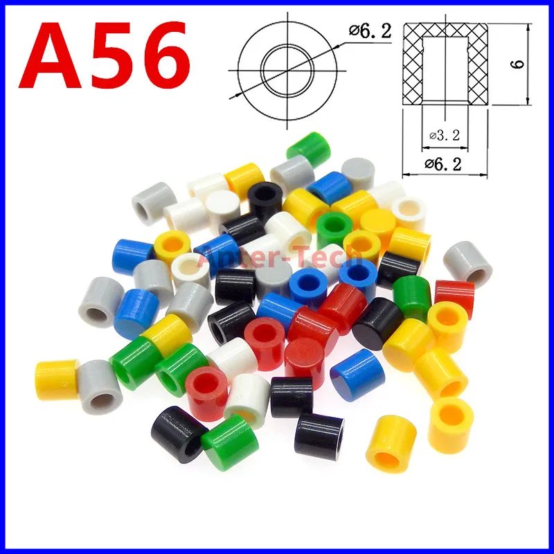 Tapa de plástico para interruptor de botón táctil, Kit de cubierta de sombrero para interruptor de 6x6mm, rojo, negro, azul, verde, blanco, gris, amarillo, 50 piezas, A56, 6x6mm