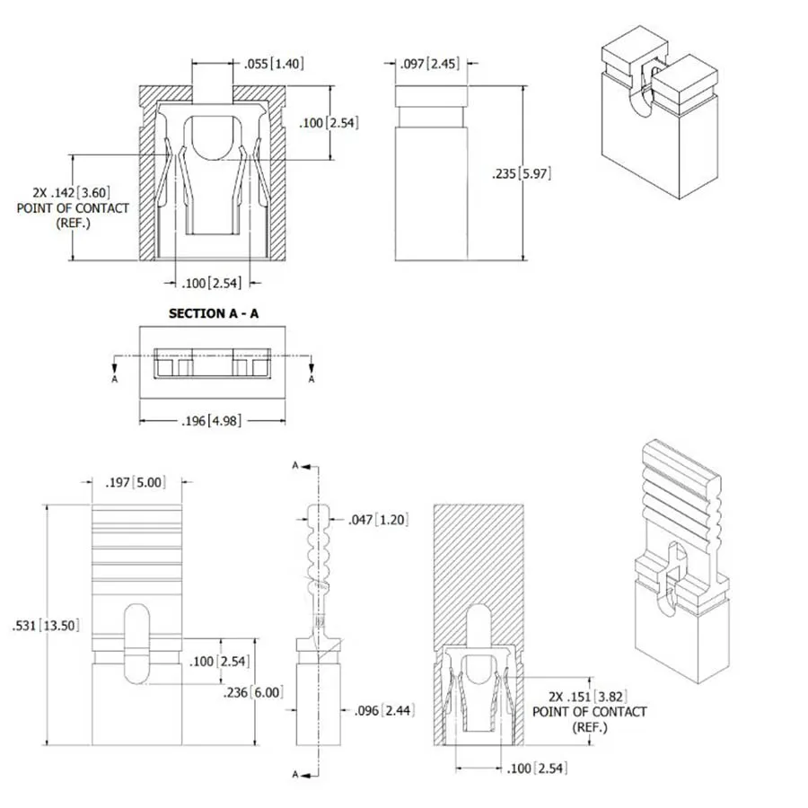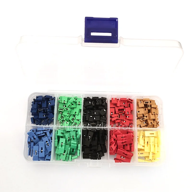 200 unids/caja 2,54mm paso corto/largo puente tapa Pin conector corto circuito tapa negro amarillo verde rojo azul