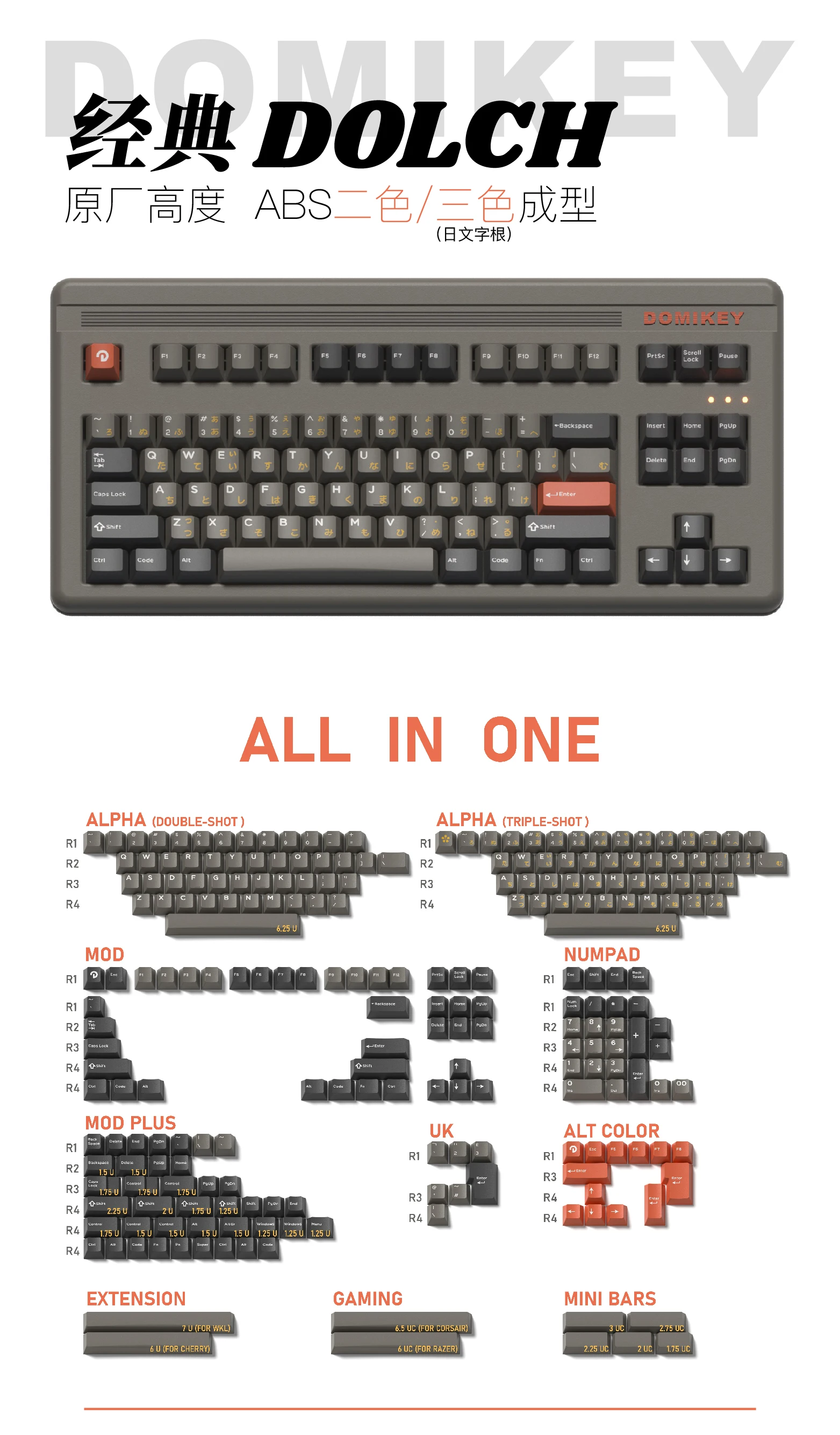 Comprar Tapa de tecla clásica Dolch todo en uno abs doubleshot, perfil de cereza Domikey para teclado mx stem poker 87 104 gh60 xd64 xd68 BM60 BM65