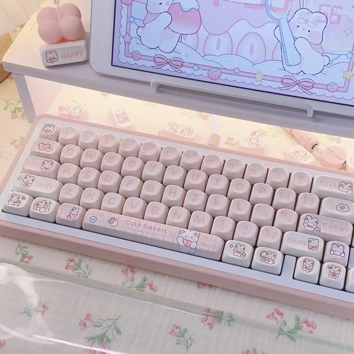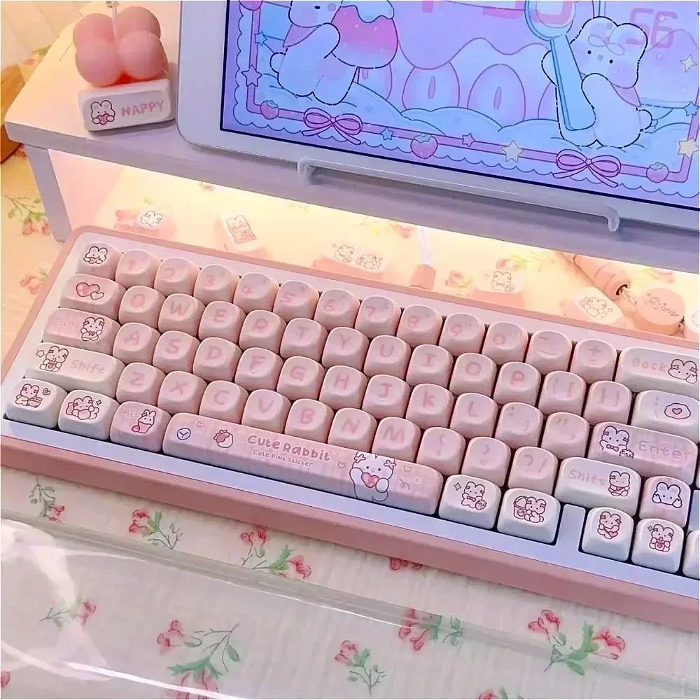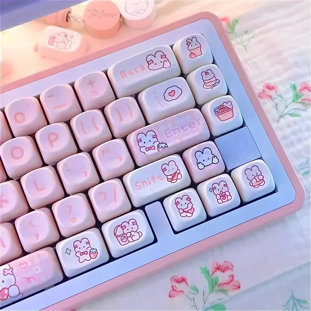 Lindo conejito rosa MOA teclas pbt sublimación de calor pequeño juego completo para MX switch 60/71/84/90/104/108 teclados mecánicos