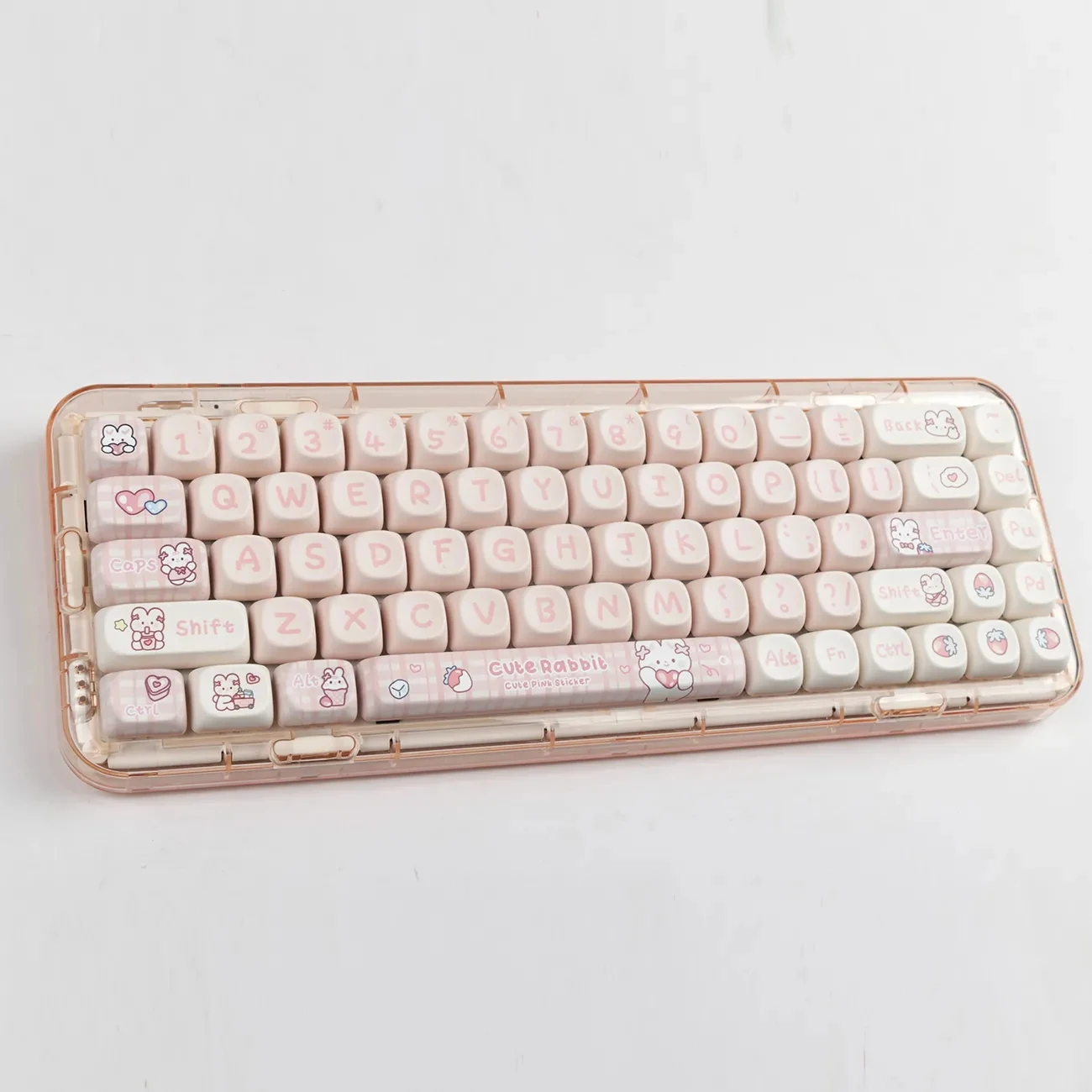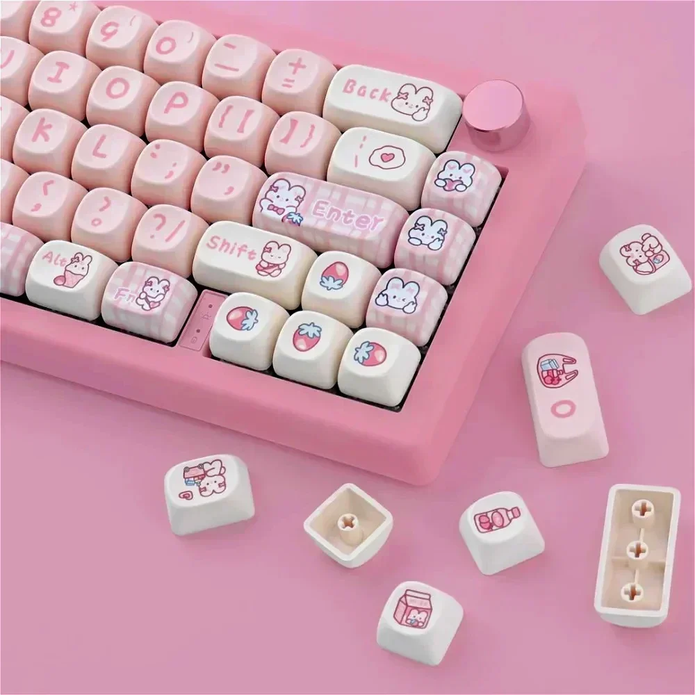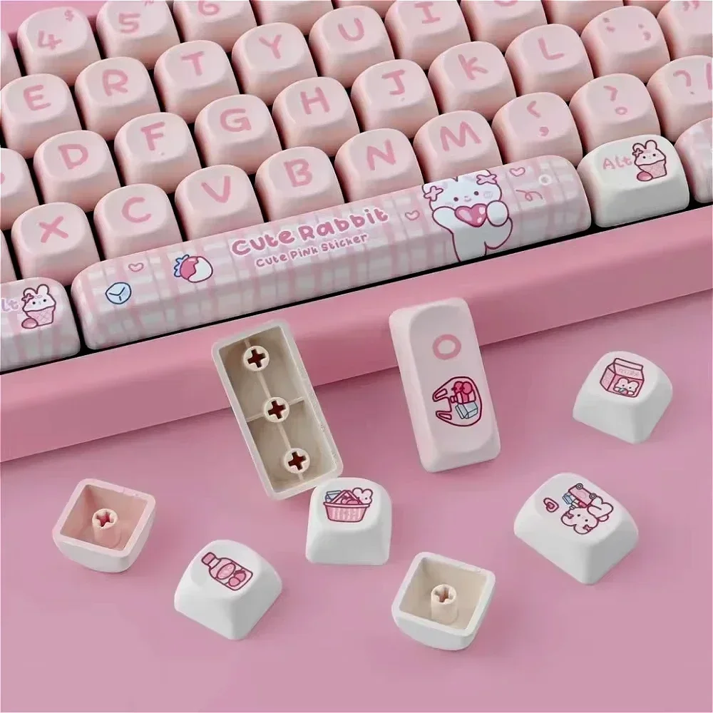 Lindo conejito rosa MOA teclas pbt sublimación de calor pequeño juego completo para MX switch 60/71/84/90/104/108 teclados mecánicos