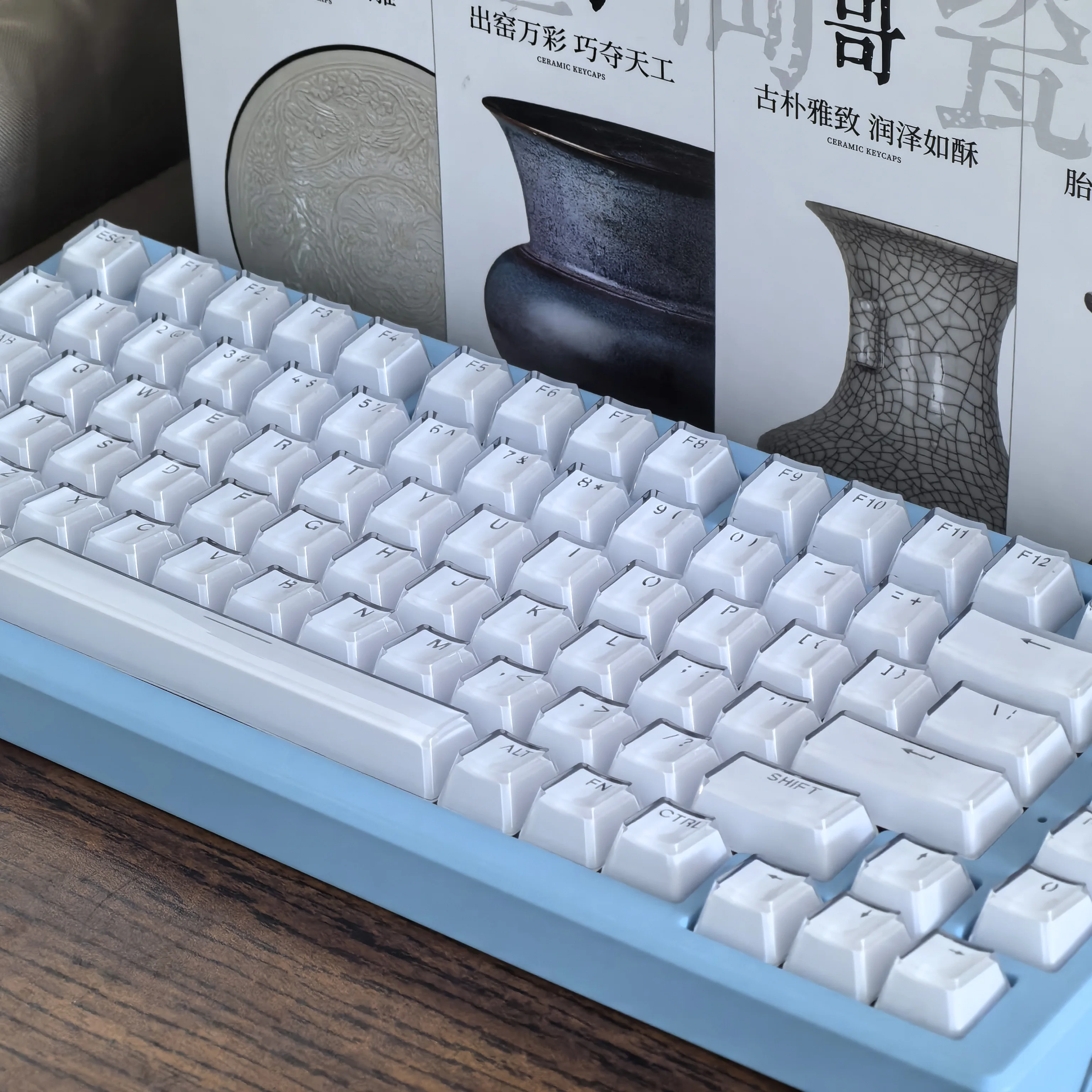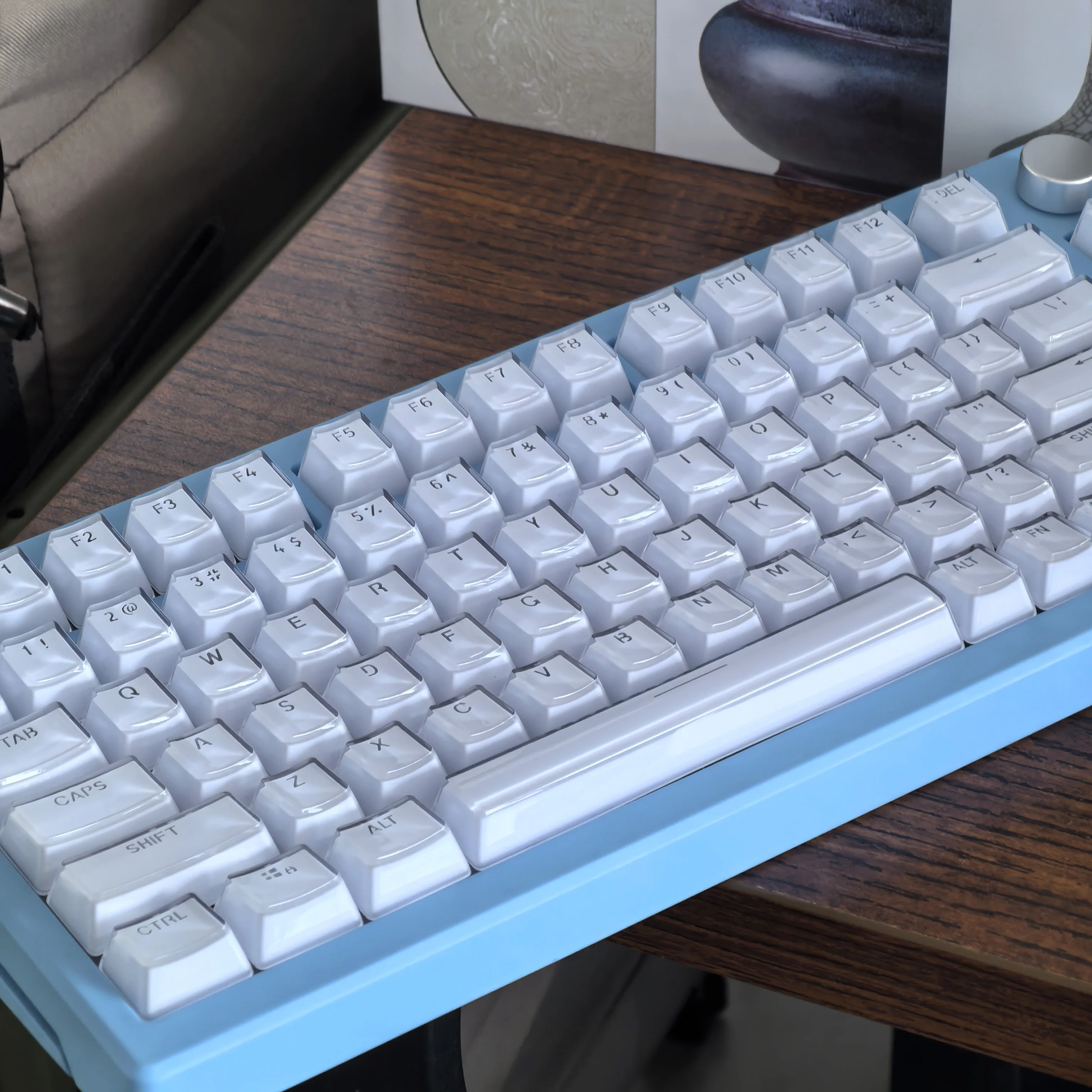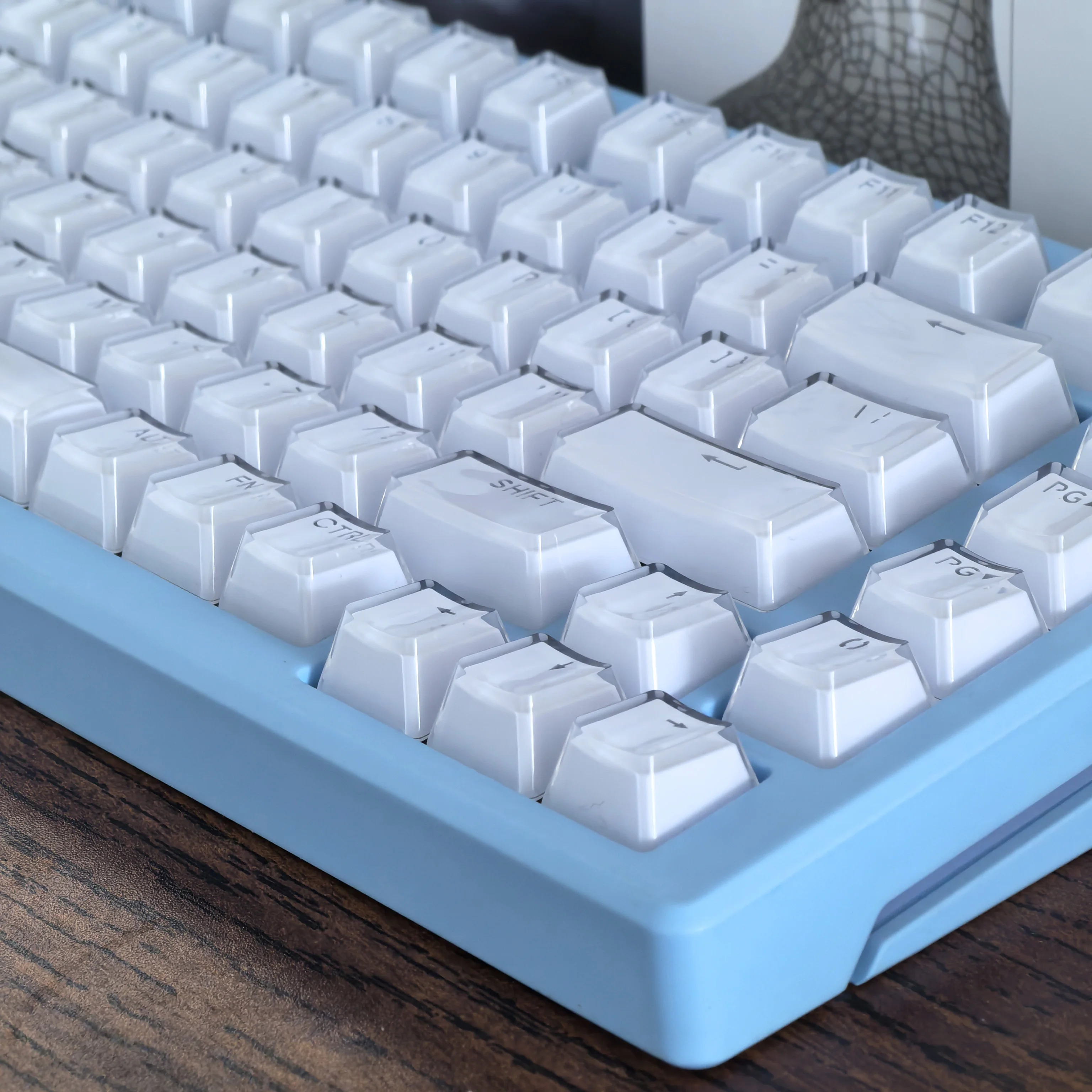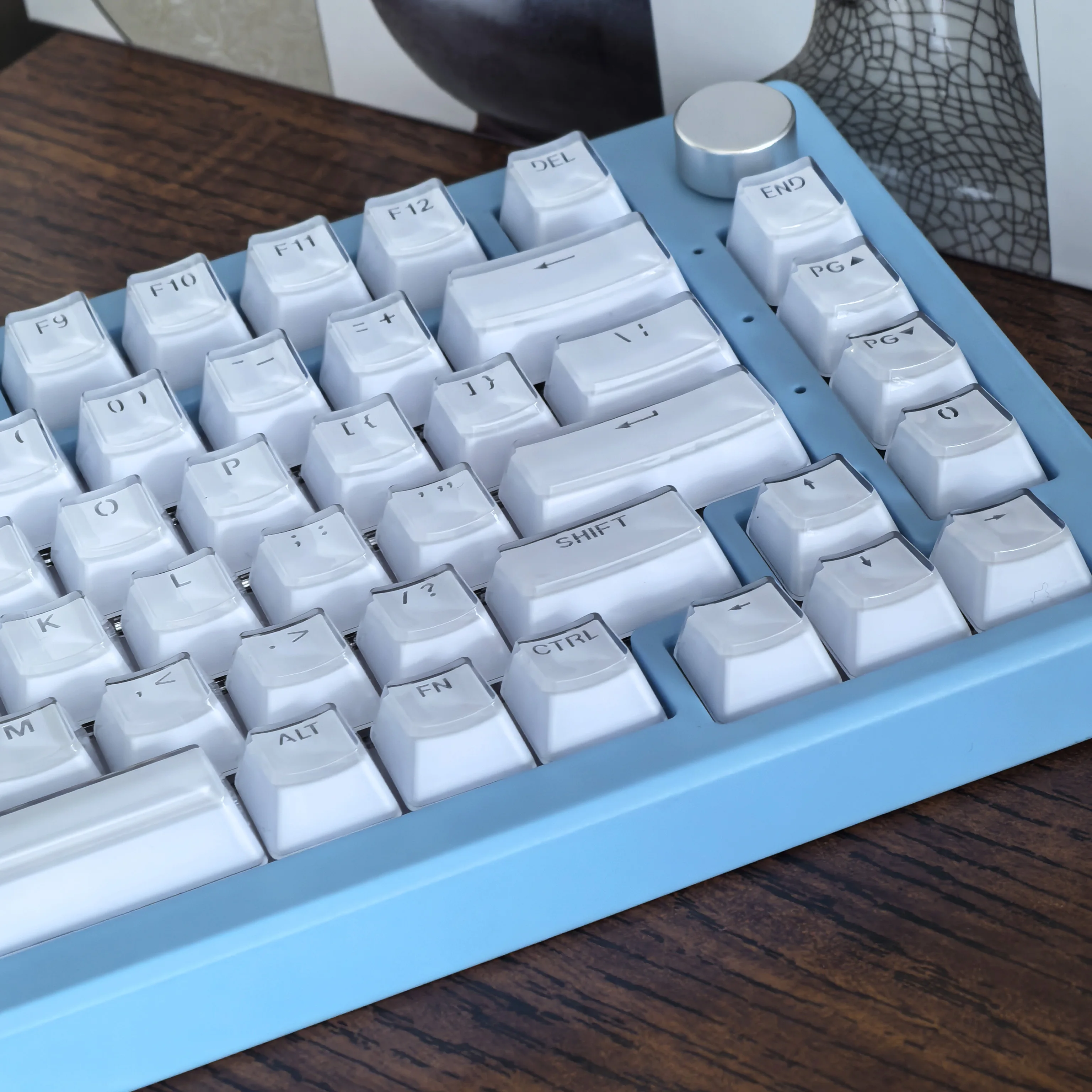 Comprar Tapa de tecla cuadrada de gelatina, textura transparente de cristal, Pc grueso, Oem, 123 teclas para Aula F75/F99/F75Pro, diseño Iso, tecla blanca fría