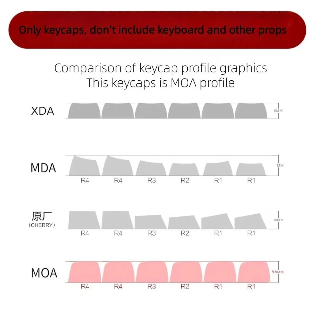 Excelentes keycaps. Me gustó mucho la sensación. Hechos de plástico duradero, las letras no se desprenden. La fuente para s, m, n es un poco rara, pero no se nota una vez que todo está instalado. Se ven originales, los recomiendo.