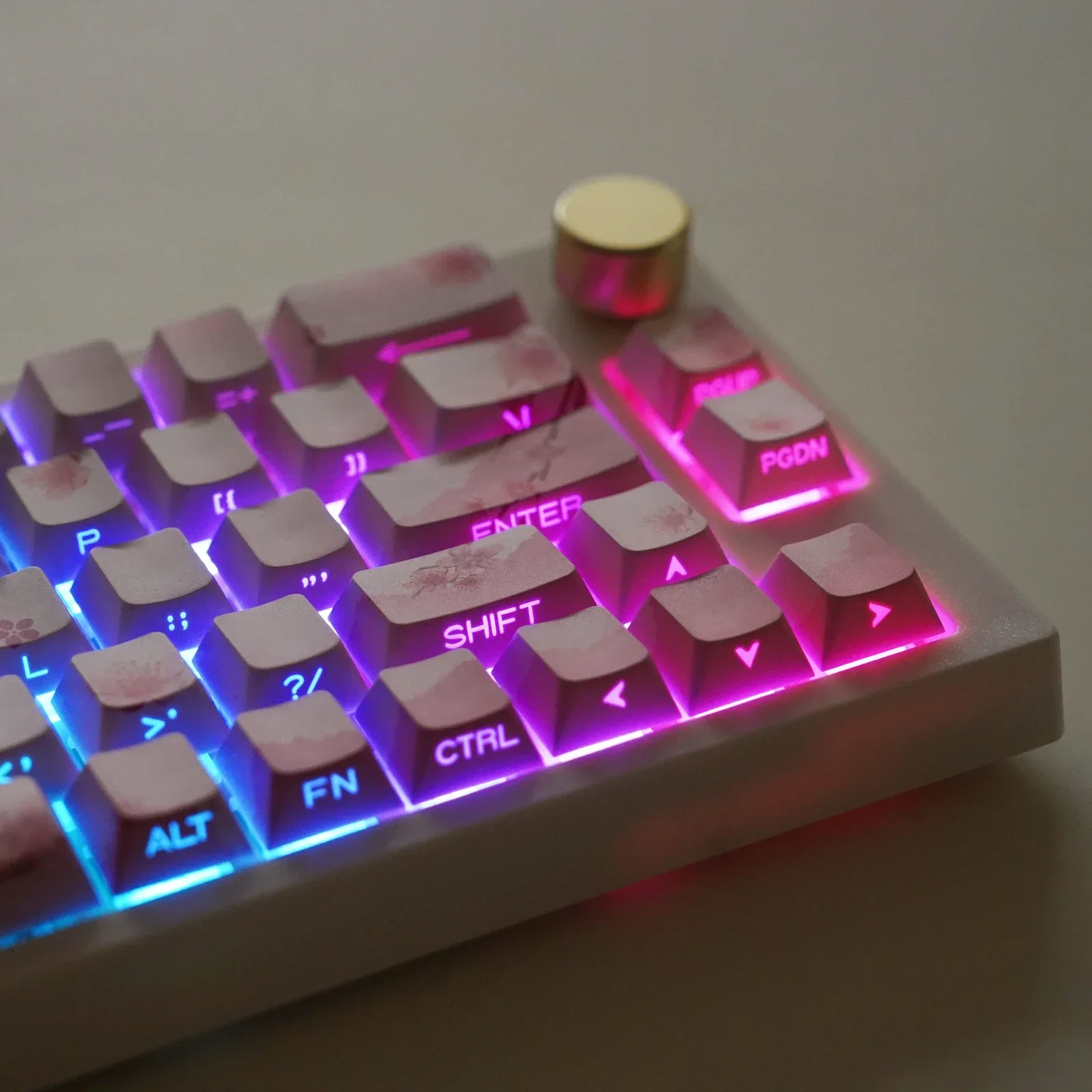 Comprar Tapa de tecla de flor con estampado lateral, perfil de cereza PBT Doubleshot Shine Through Keycap, teclas de teclado mecánico, 127 teclas