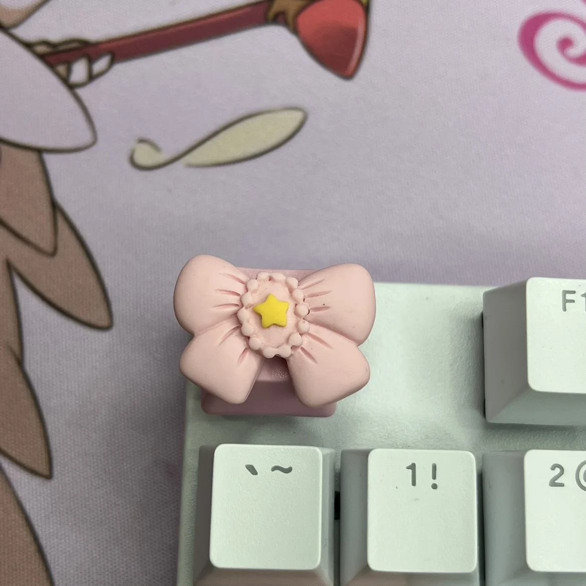 Tapa de tecla con lazo rosa para niña, decoración de ala de animación tridimensional, eje transversal, tapa de tecla de teclado mecánico - imagen 1