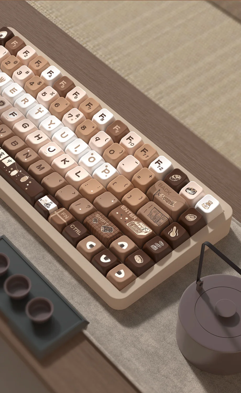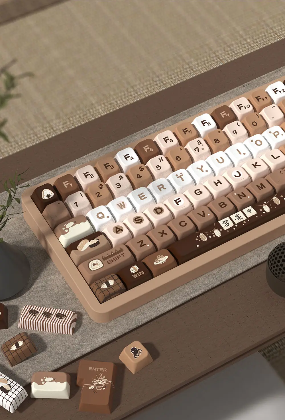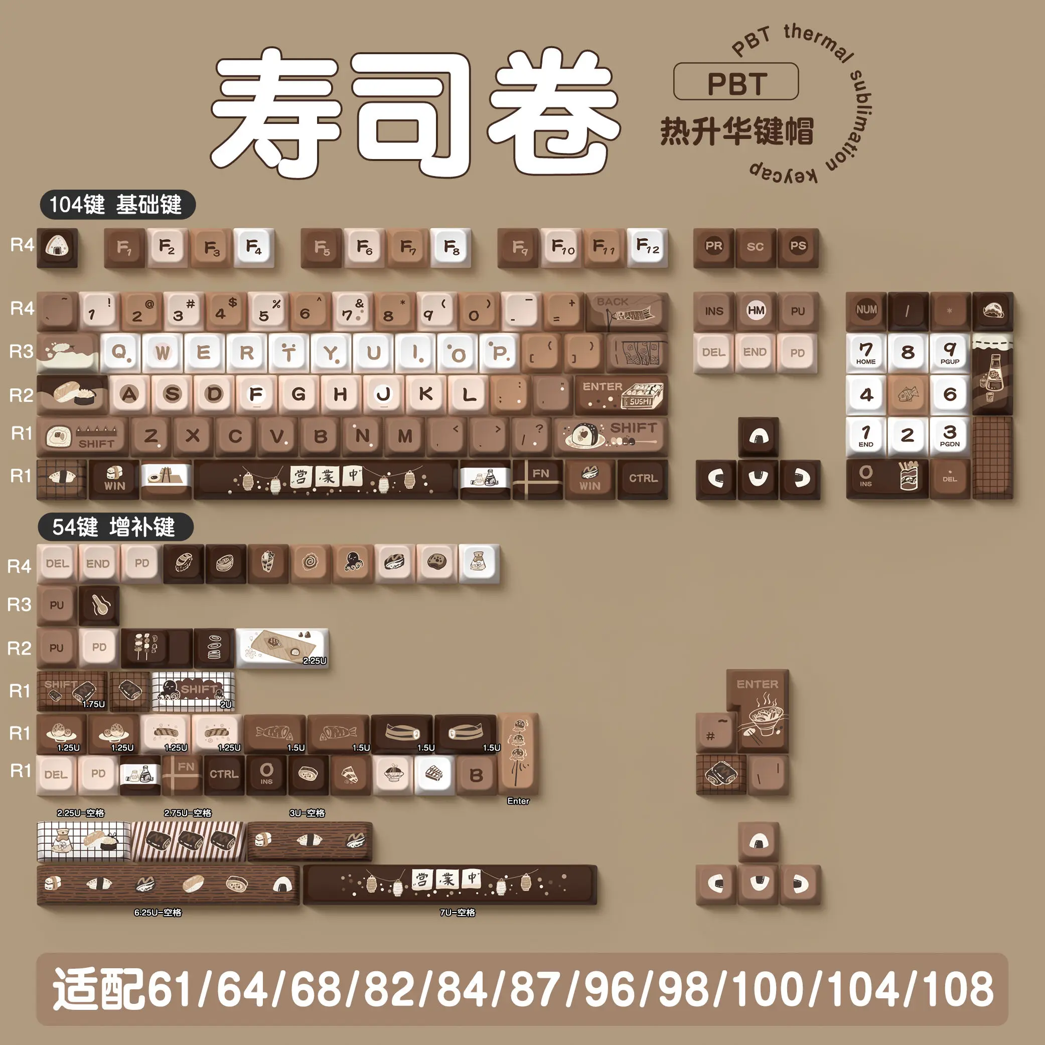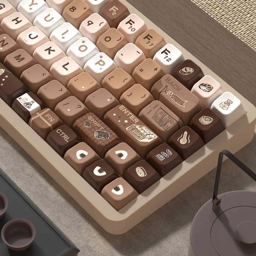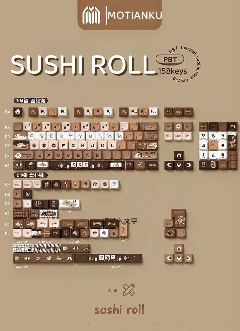 Comprar Tapa de tecla marrón de 138/158 teclas, rollo de Sushi, altura MDA, PBT, proceso de sublimación de cinco lados para teclado mecánico 87 104
