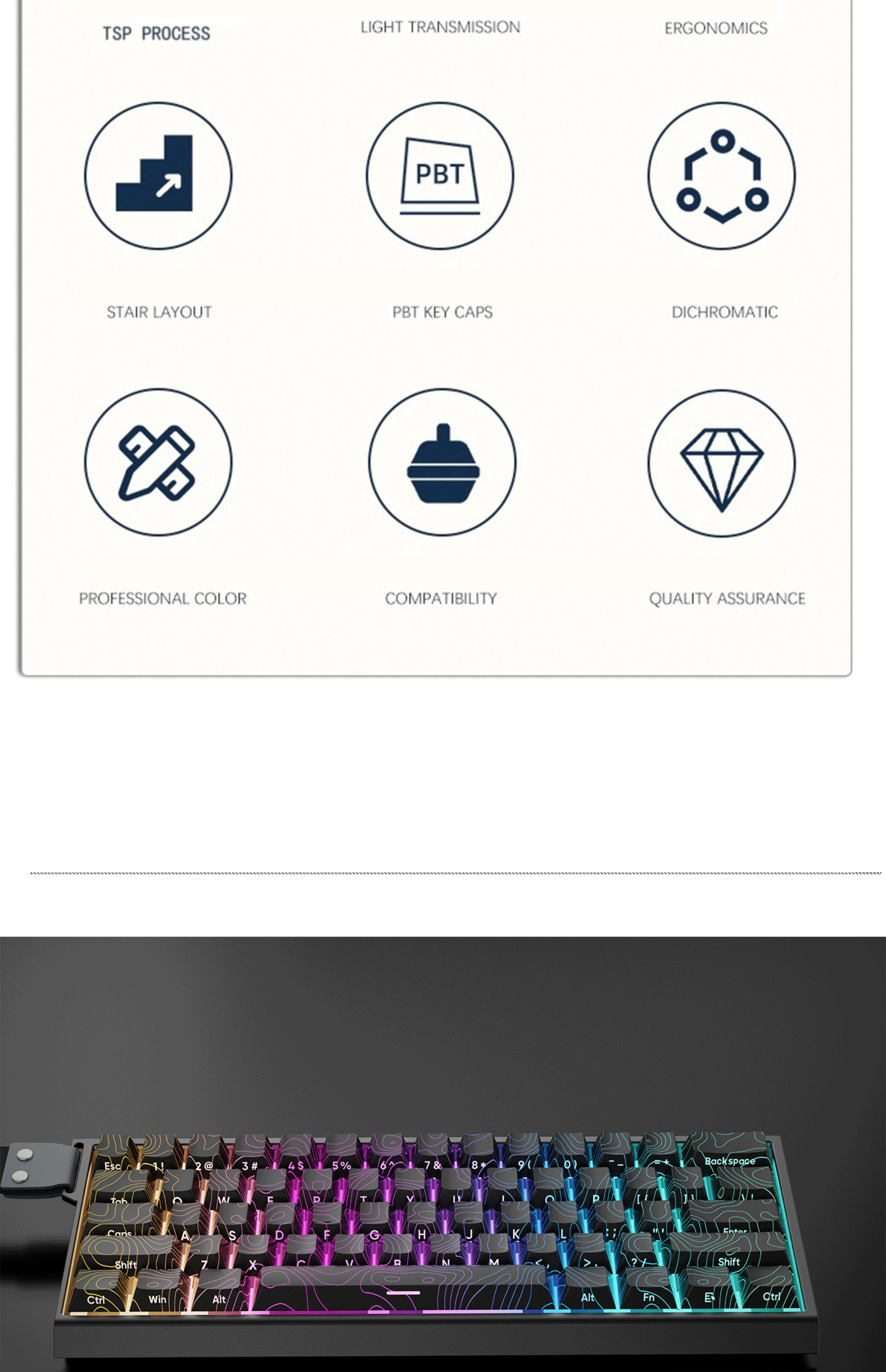 【Cherry Profile Keycaps】The key cap designed with the classic Cherry profile, engineered for the ultimate typing experience. You won't get tired even if you use it for a long time at work or gaming.