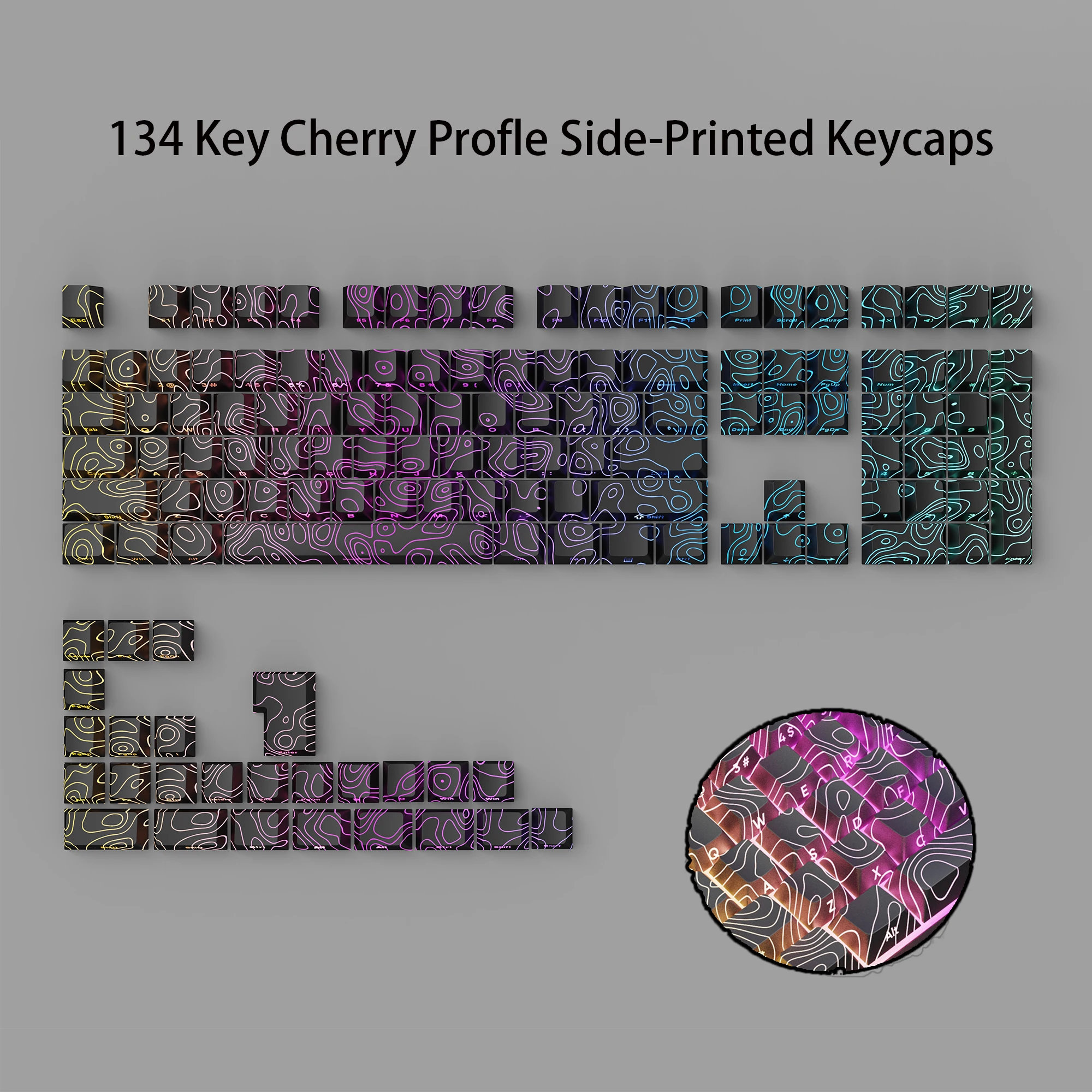 Comprar Tapa de tecla PBT con estampado lateral topográfico V3 3,0, 136 teclas, retroiluminada, tinte Sub, perfil de cereza, para teclado mecánico Cherry MX Gamer