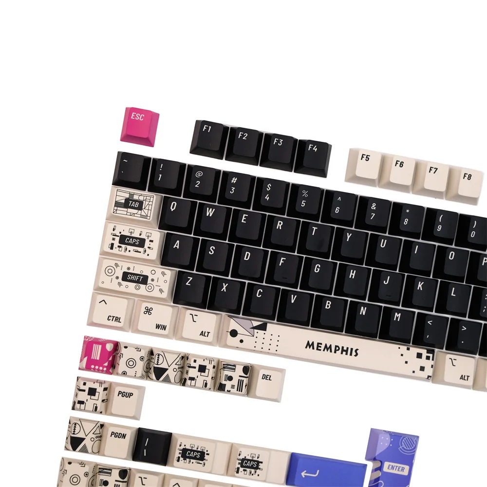 Comprar Tapa de tecla PBT estilo Memphis, perfil de cereza, 142 teclas, sublimación de tinte, personalizada, ISO Enter, 1.5U, 1.75U, 2U, 2.25U, cambio 3U, 6.25U, 7U