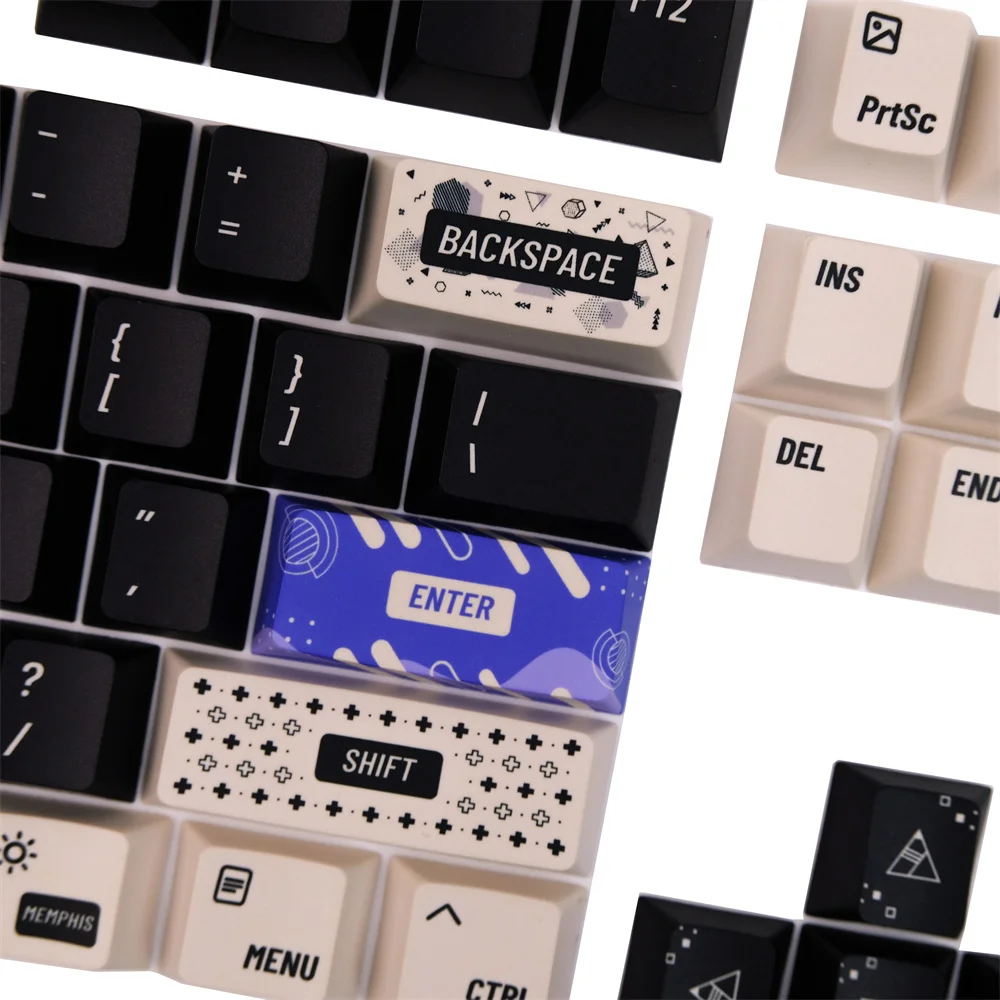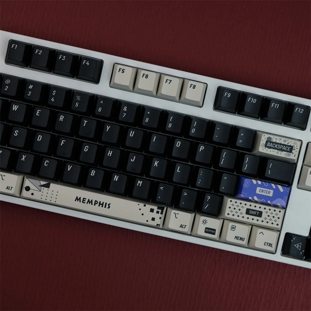 Comprar Tapa de tecla PBT estilo Memphis, perfil de cereza, 142 teclas, sublimación de tinte, personalizada, ISO Enter, 1.5U, 1.75U, 2U, 2.25U, cambio 3U, 6.25U, 7U