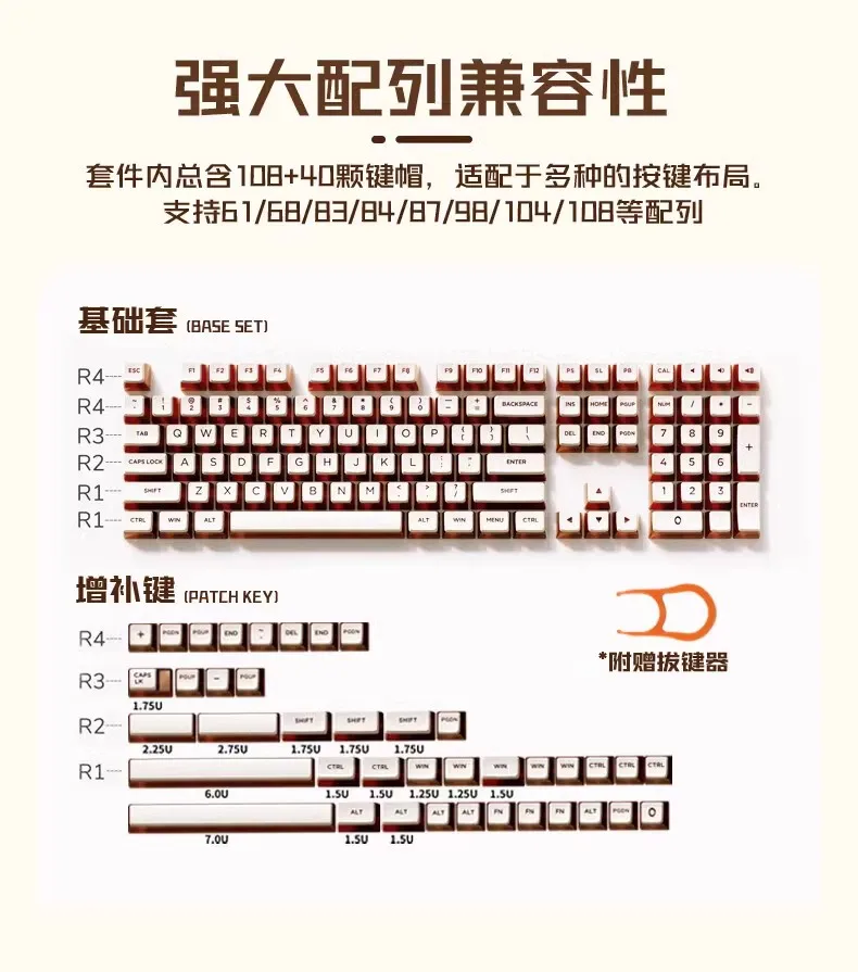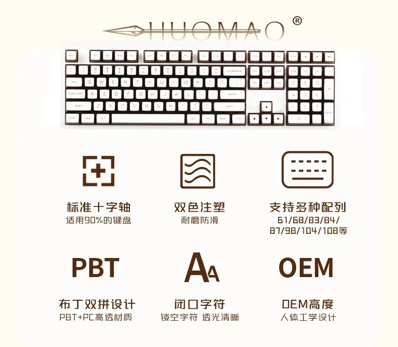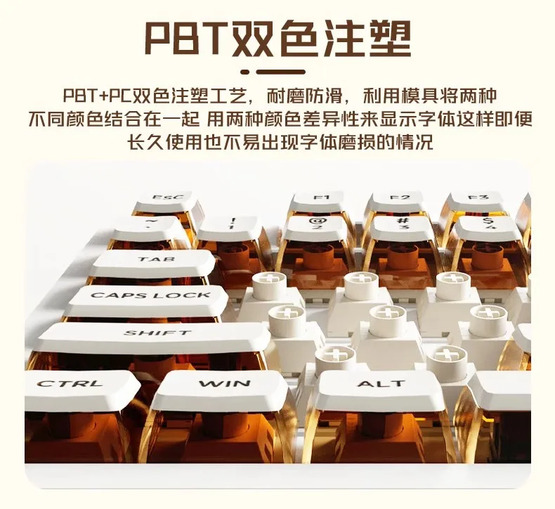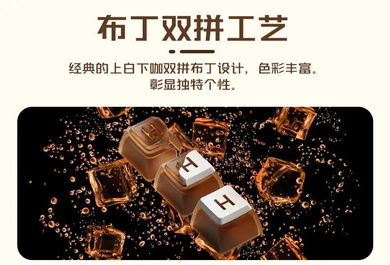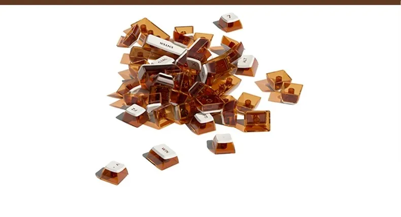 Tecla de pudín de leche de doble piel de café helado con cuatro lados, Material PBT transparente, teclas de teclado OEM108 semitransparentes