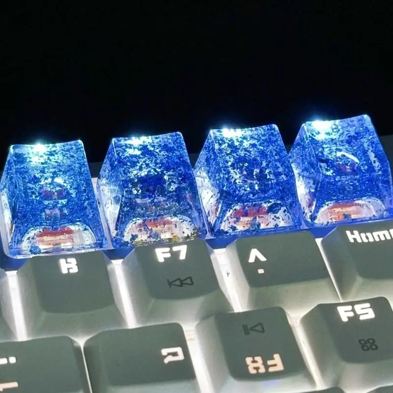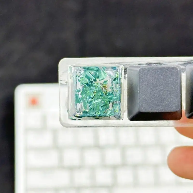Características:OOTDTYTecla hecha a mano de resina de perfil OEM, teclas de papel de aluminio dorado translúcido,