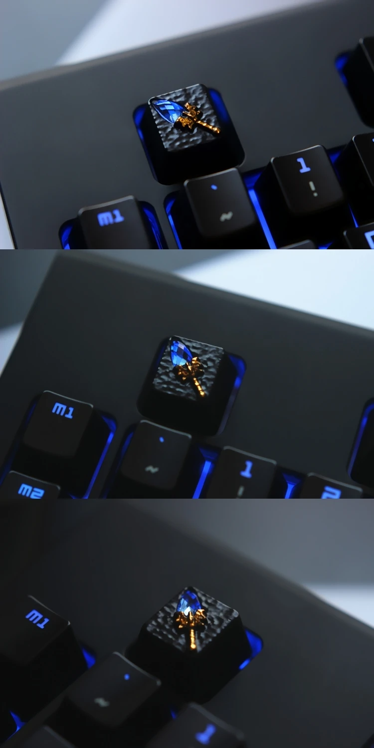 La posición más baja de la tapa de la llave es de aproximadamente 0,9 cm. Está cerca de la altura R4 de la fábrica original Cherry y la altura total es de aproximadamente 1,1 cm después de agregar un patrón estereoscópico superficial. Está cerca de la altura de la tapa de la llave OEM R4. Se sugiere instalarlo en el área ESC, F y en el área digital de posición clave principal.