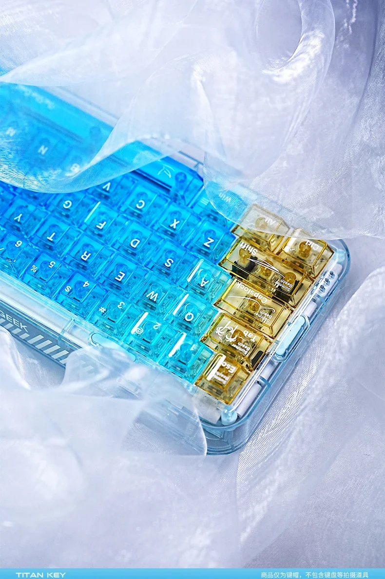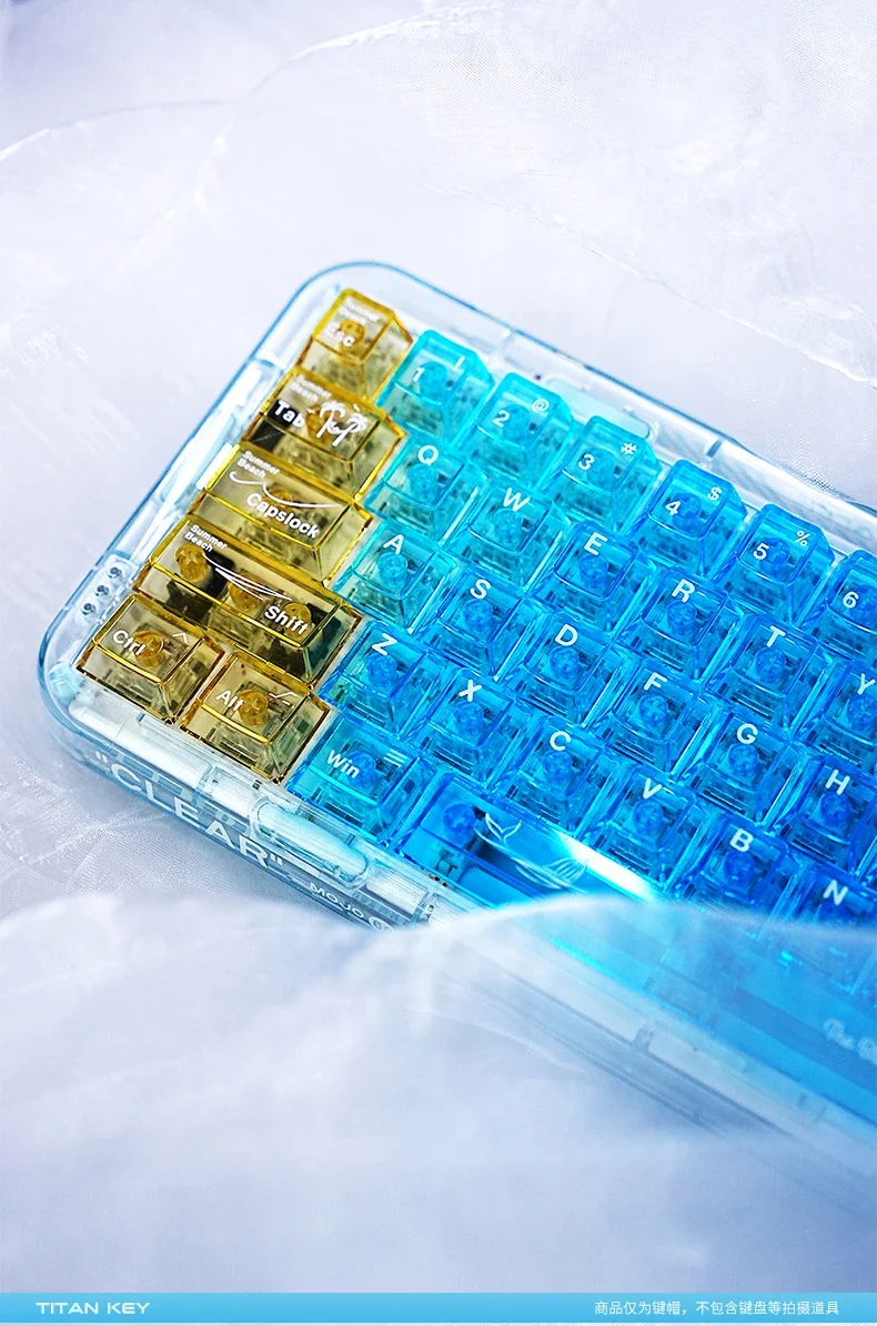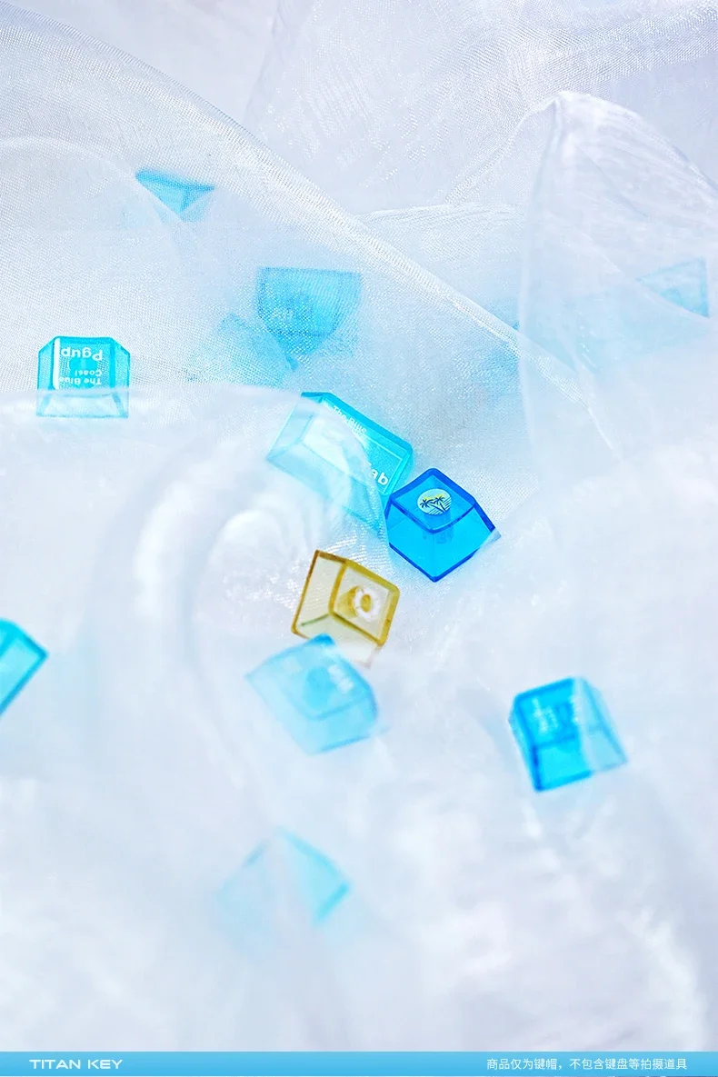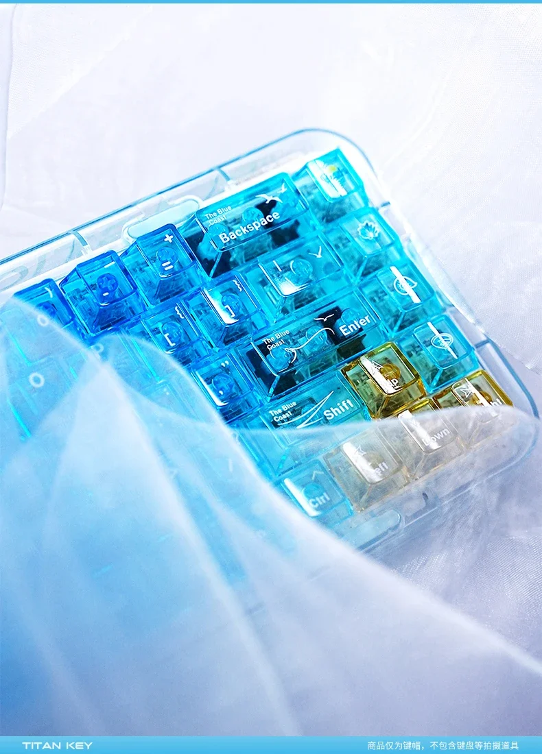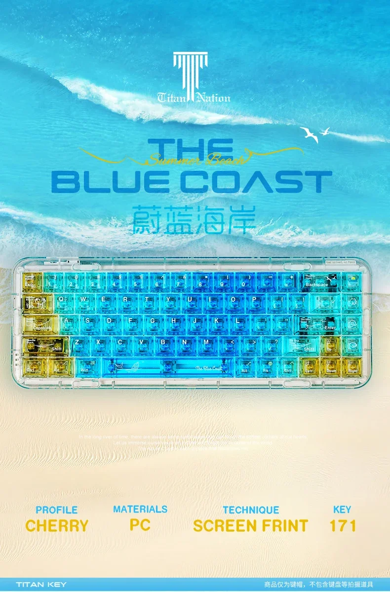 Tapa de tecla con tema de Costa azul, 171 teclas, tapa de tecla transparente amarilla y azul, juego de teclas de PC altamente transparente de cereza para jugadores de MADLIONS
