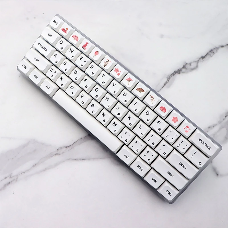 Material PBT, perfil XDA, todas las teclas tienen la misma altura.