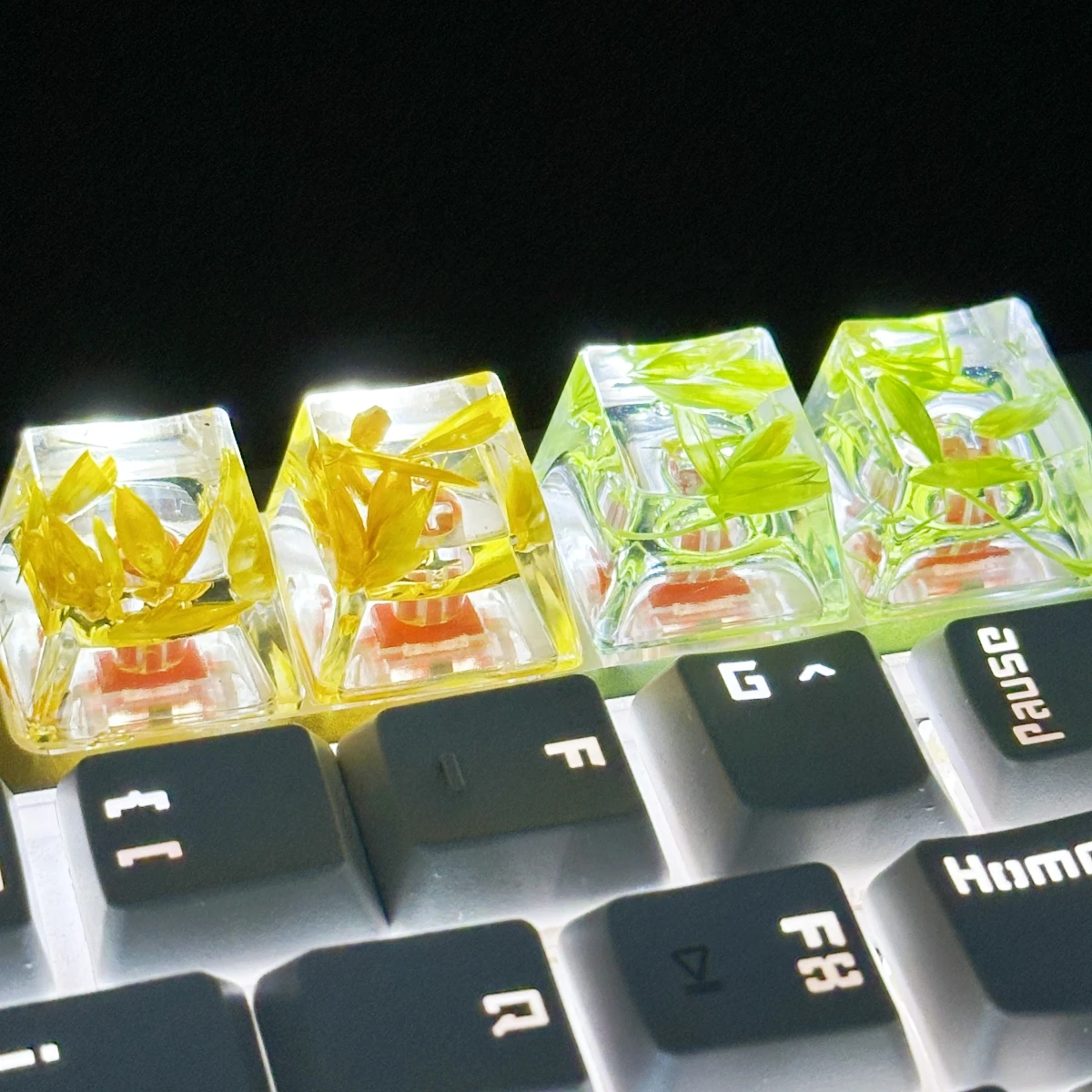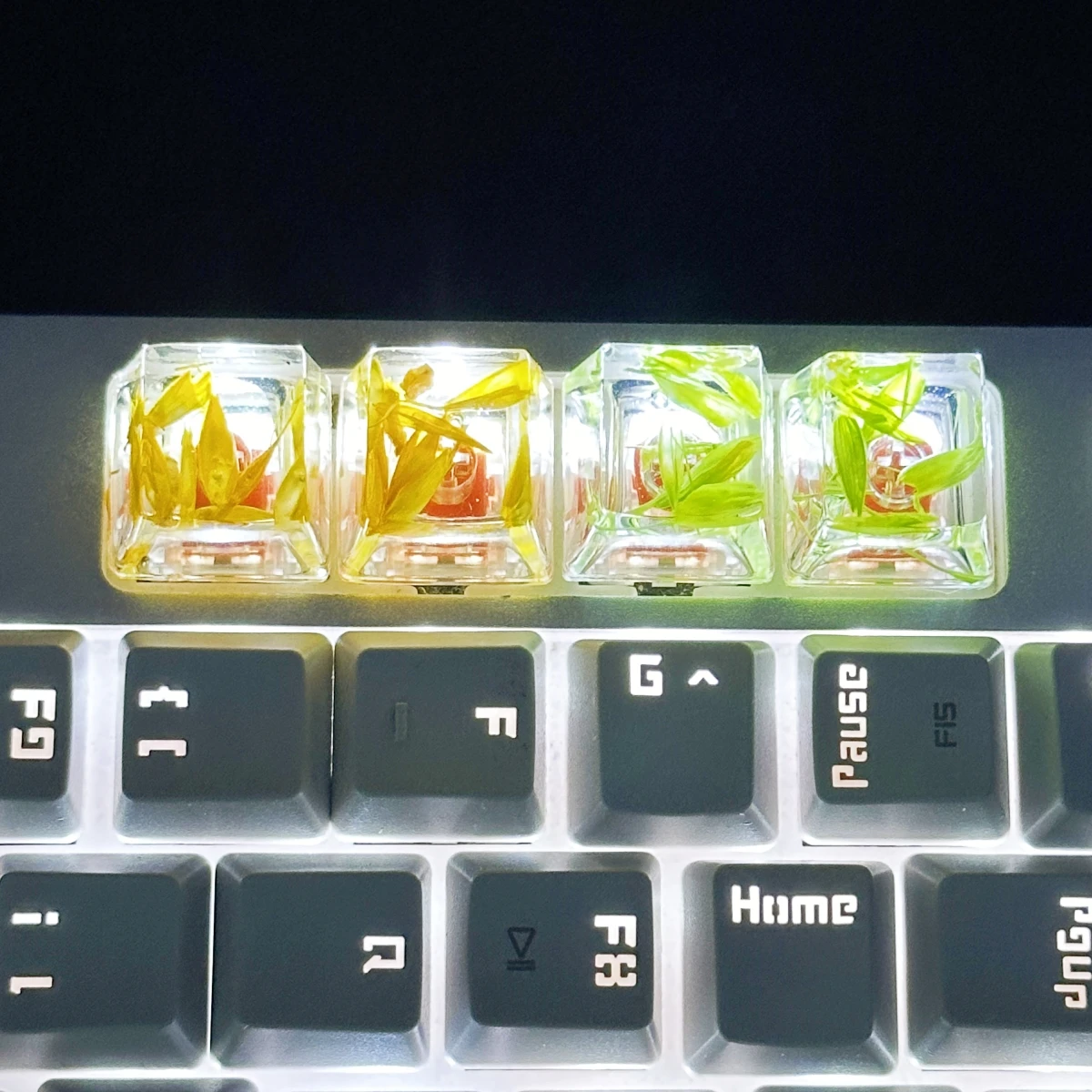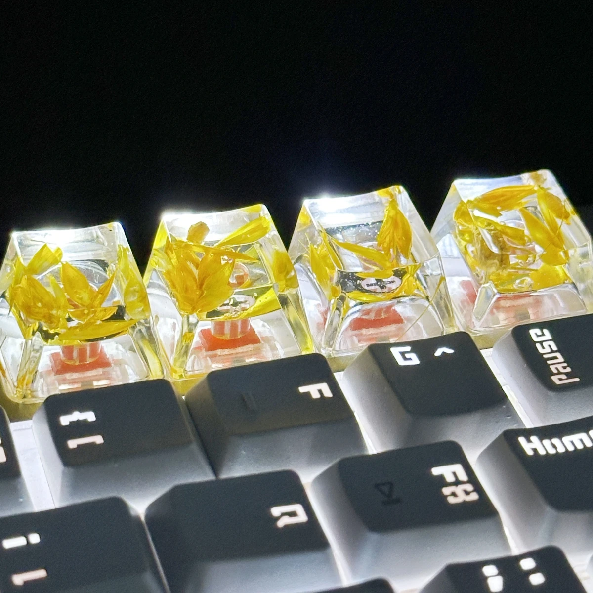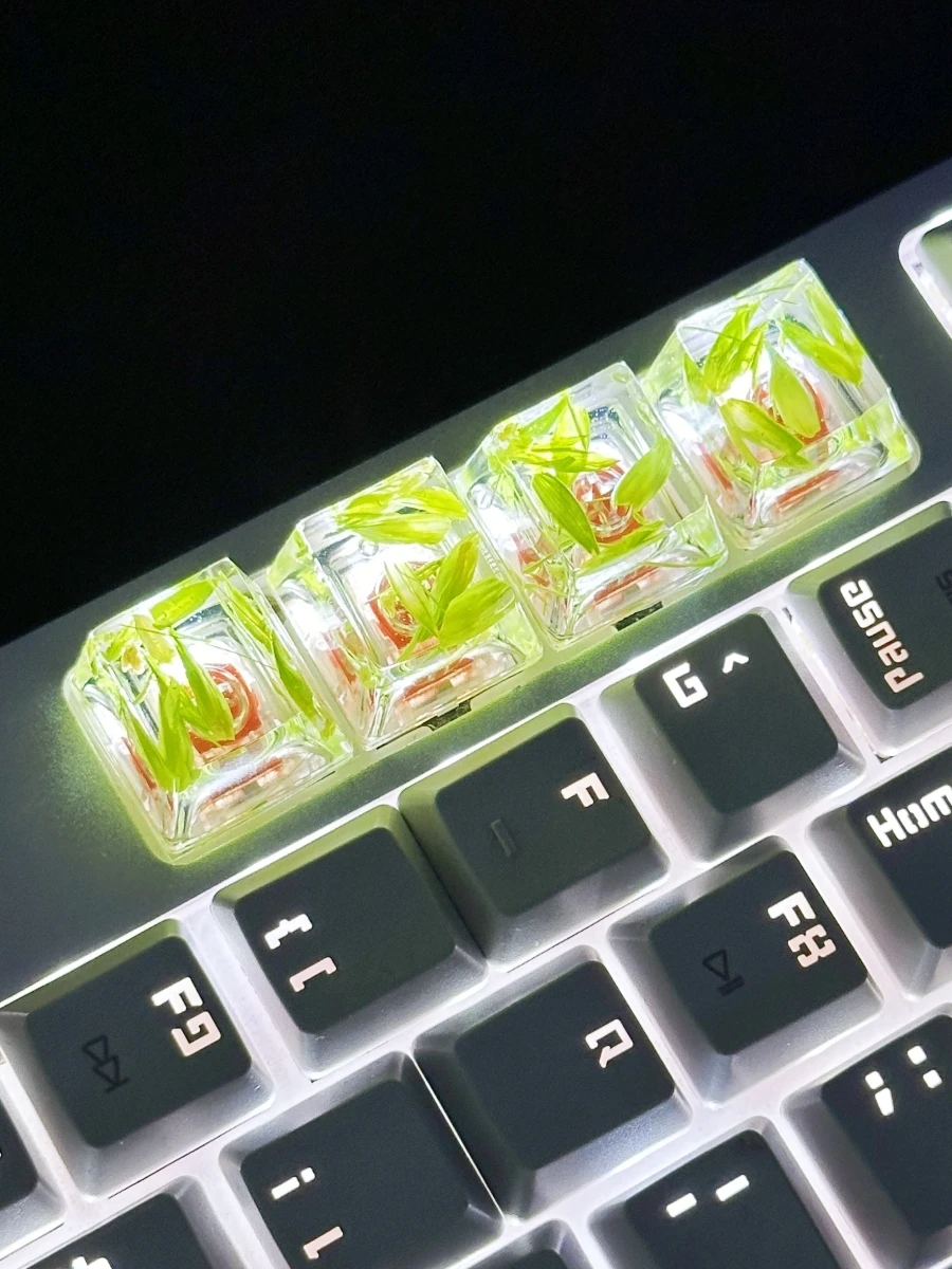 Comprar Tapa de tecla de trigo transparente, pegamento de gota de mano, 4 piezas, accesorios de teclado mecánico, personalidad pequeña y fresca