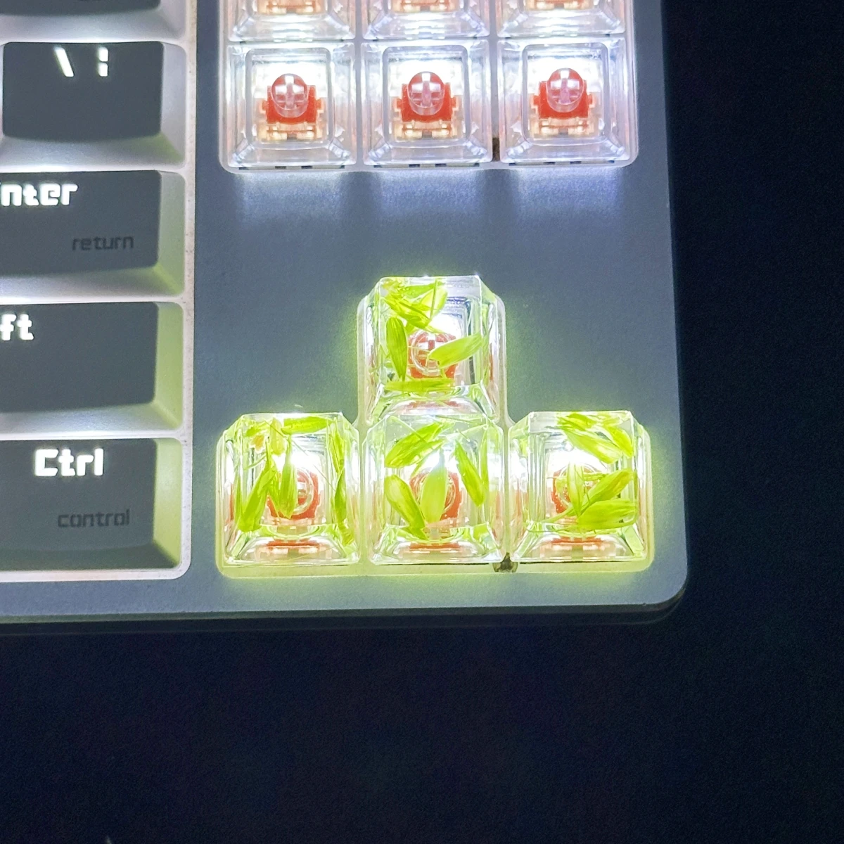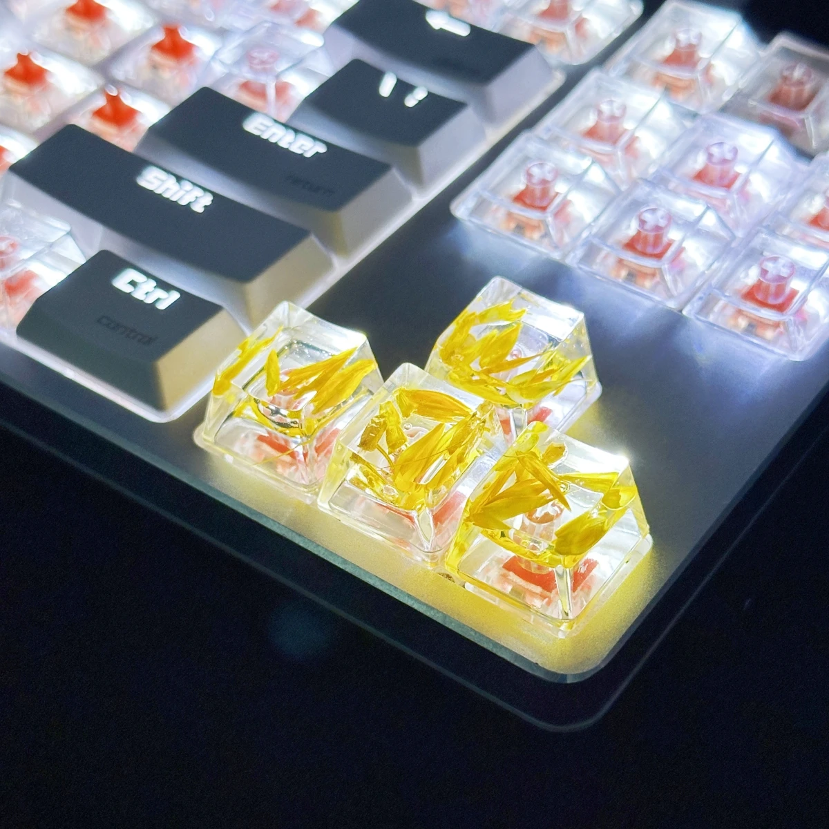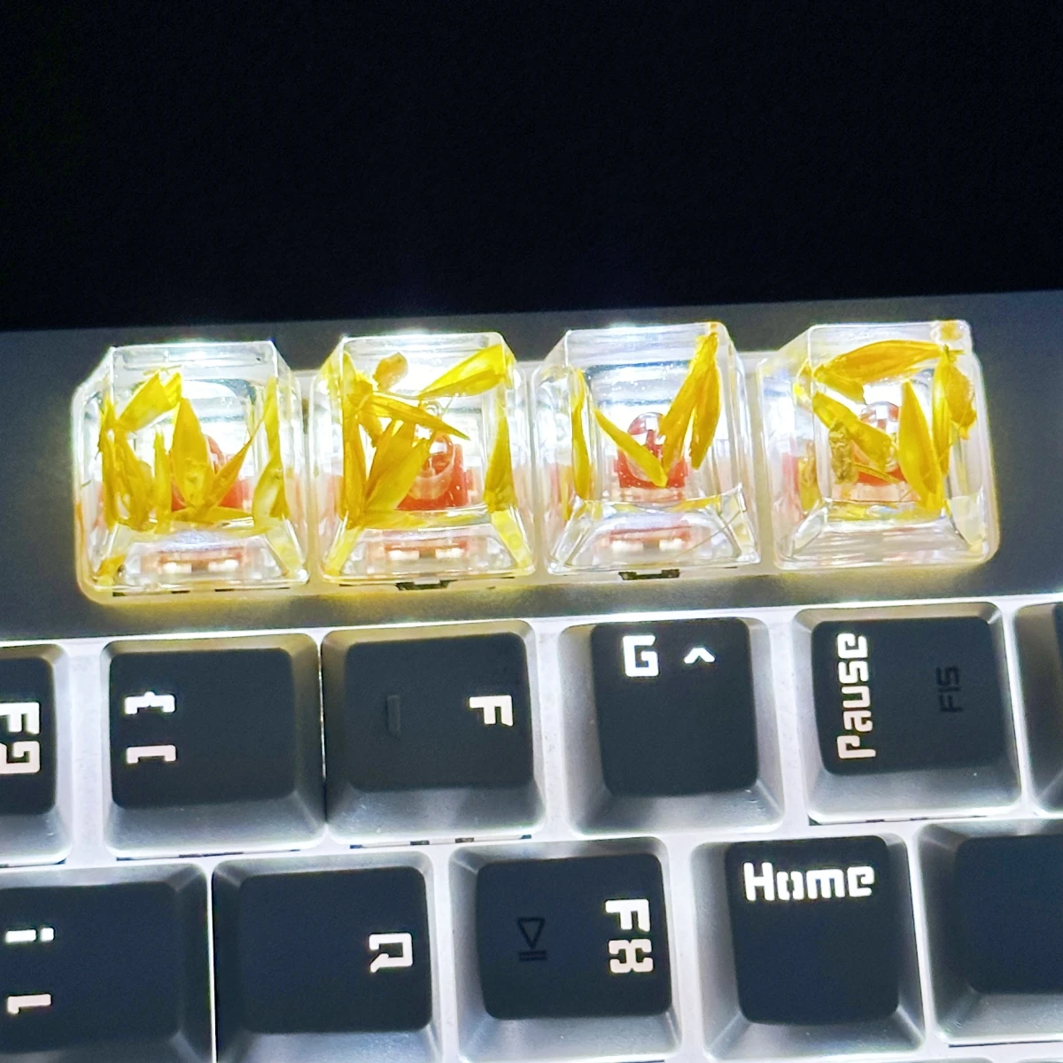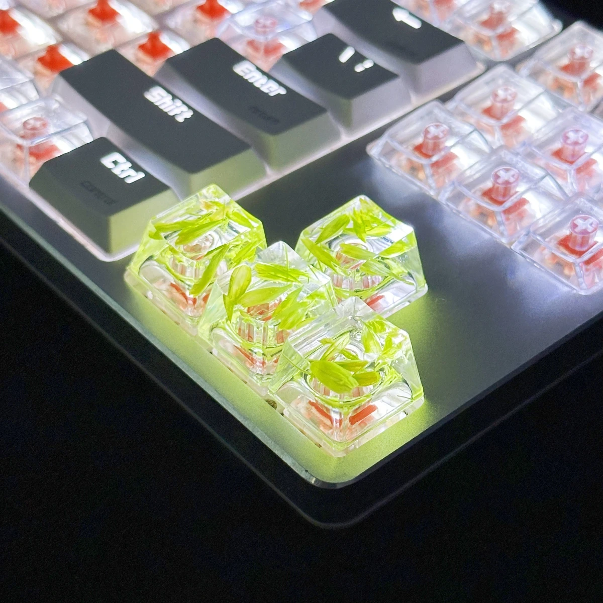 Comprar Tapa de tecla de trigo transparente, pegamento de gota de mano, 4 piezas, accesorios de teclado mecánico, personalidad pequeña y fresca
