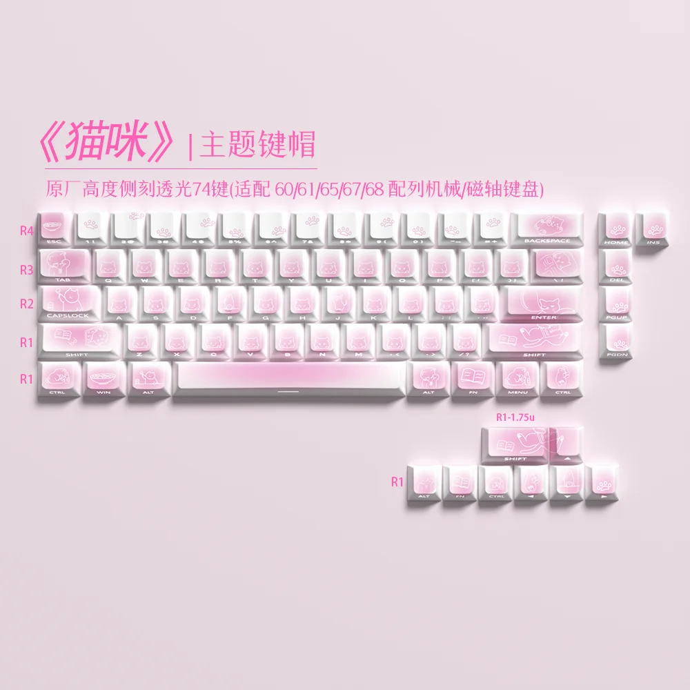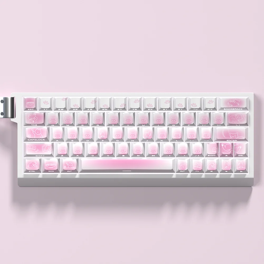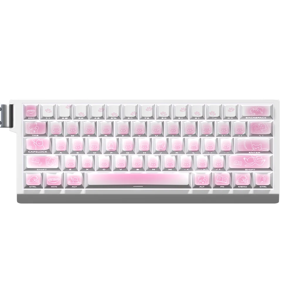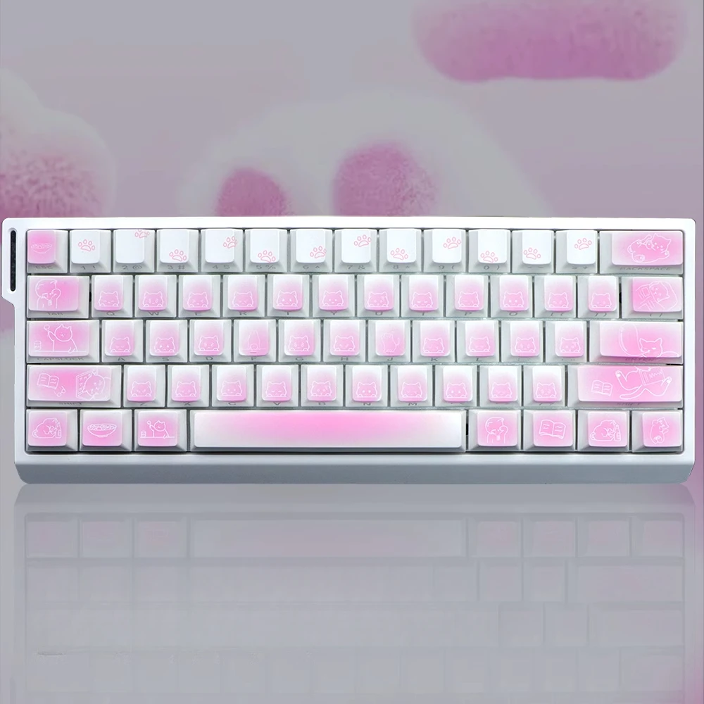 Tapa de tecla con tema de gato rosa, PBT de 140 teclas, personalizada, bonita funda de teclado para niña, perfil de cereza translúcido, tecla para teclado mecánico