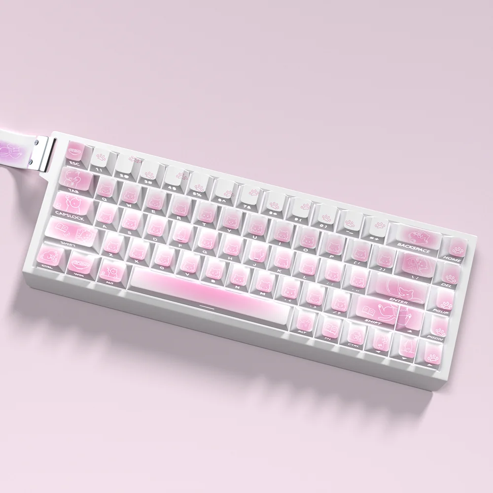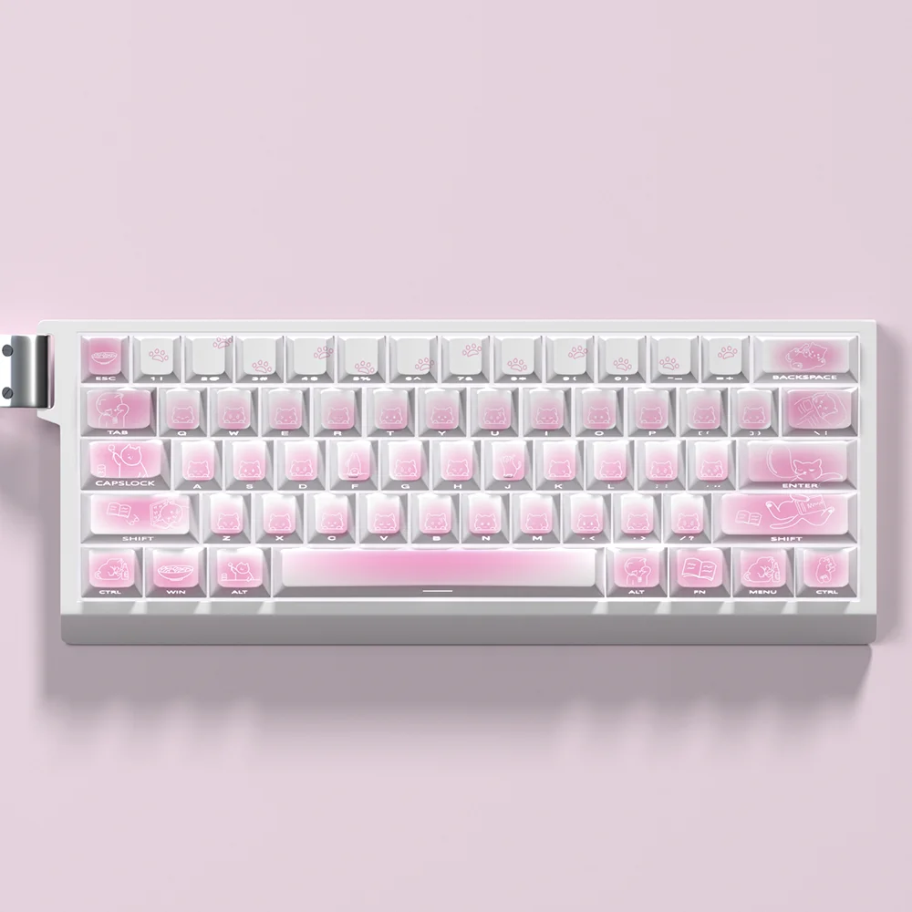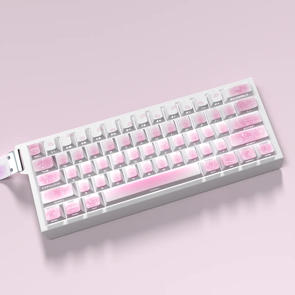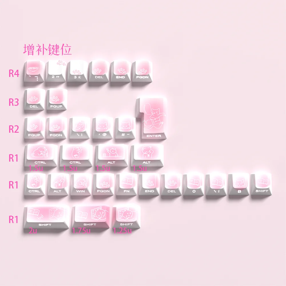 Tapa de tecla con tema de gato rosa, PBT de 140 teclas, personalizada, bonita funda de teclado para niña, perfil de cereza translúcido, tecla para teclado mecánico