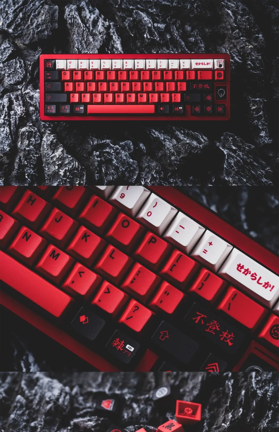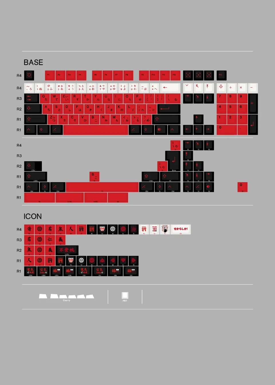 Tapa de teclado temática NINA ISERI 179 teclas PBT personalizada, tapa de teclado de Anime negra y roja, tapa de tecla de perfil de cereza para teclado mecánico 68/75/80