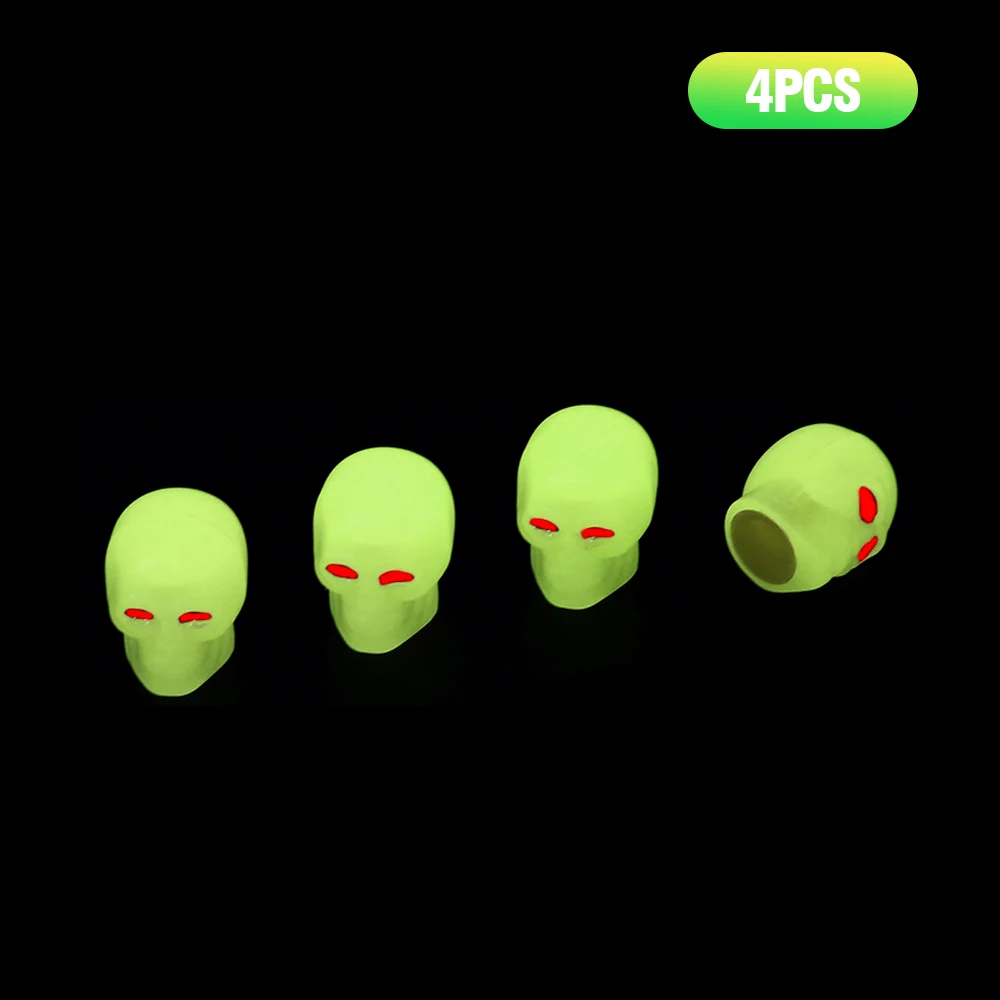 Comprar Tapa de válvulas luminosas para neumáticos de Calavera, tapas de válvula fluorescentes universales para automóviles, camiones, motocicletas y bicicletas, cubierta de boquilla de neumático brillante nocturna