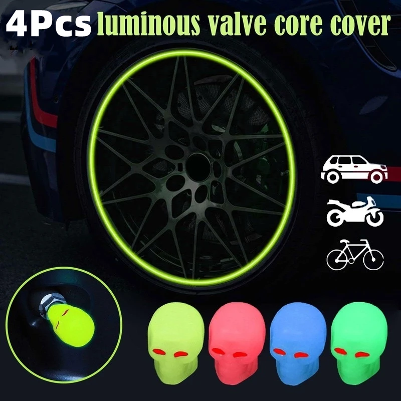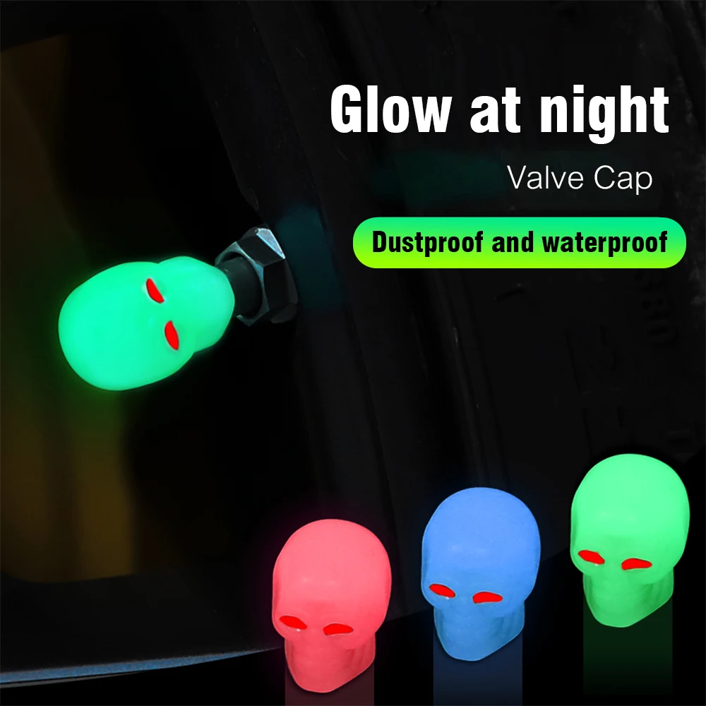 Comprar Tapa de válvulas luminosas para neumáticos de Calavera, tapas de válvula fluorescentes universales para automóviles, camiones, motocicletas y bicicletas, cubierta de boquilla de neumático brillante nocturna
