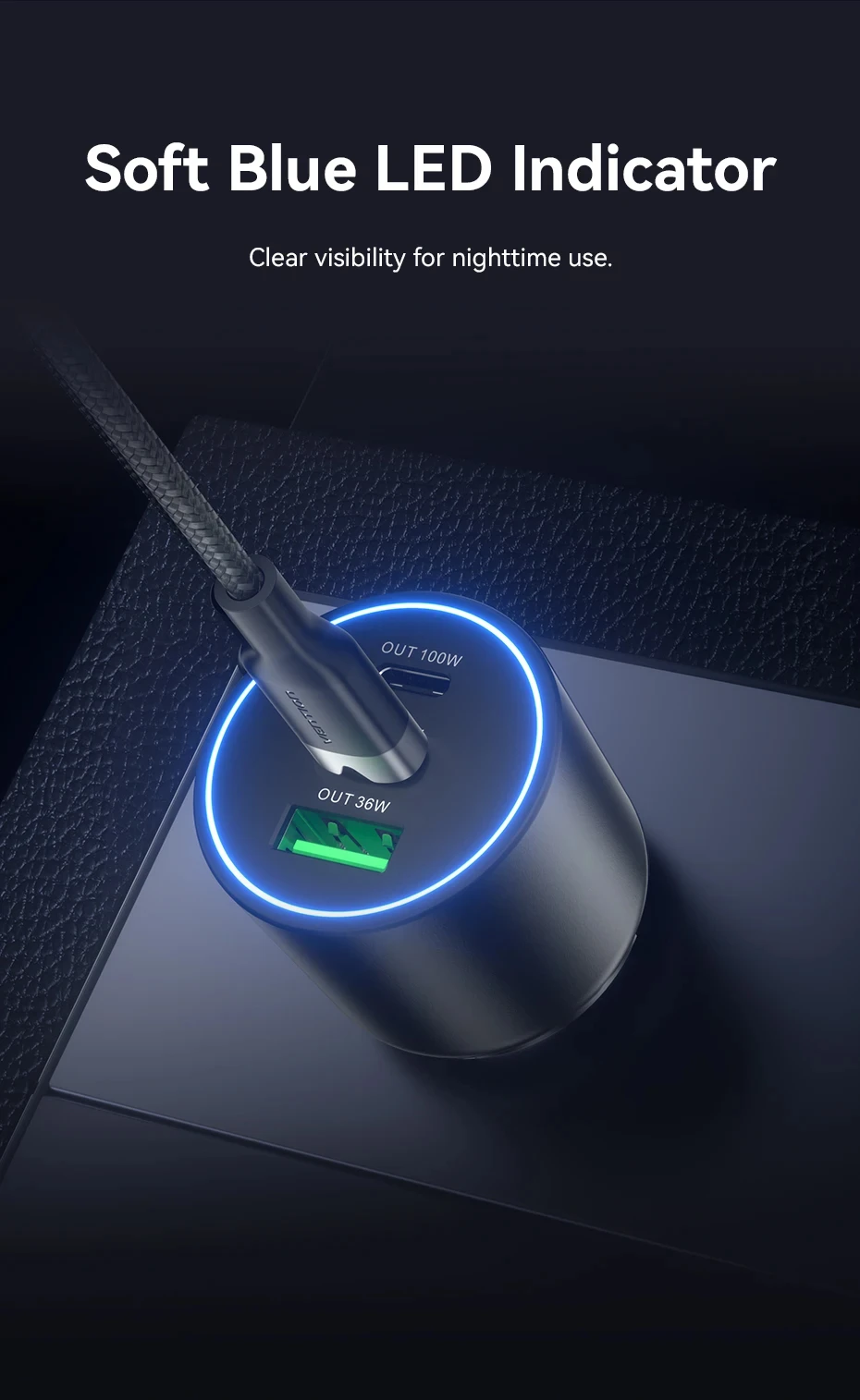 FFQ-Cargador de coche USB C+C+A de tres puertos (100W+30W+18W) tipo ABS negro