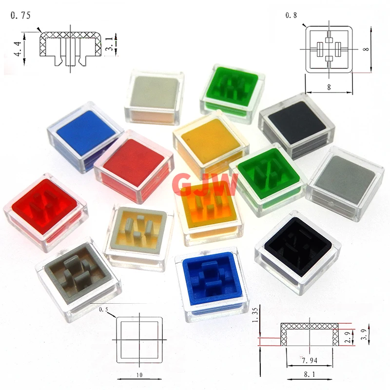 Comprar Tapas de botón de Interruptor táctil cuadrado de Color A66, sombrero para 6x6x7,3mm, tapa de cabeza cuadrada, Kit de ABS transparente, 50 piezas