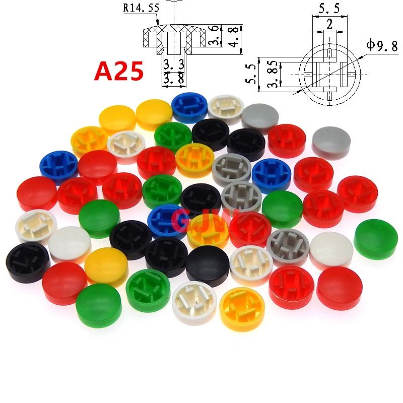 Comprar Tapas de botón de plástico A25, tamaño de 4,8x9,8mm para B3F-4055, 12x12x7,3mm, 70 unidades