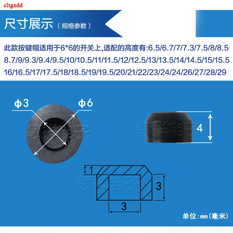 Tapas de botón táctiles transparentes, tapa de plástico, diámetro exterior, 6 de alto, 4 orificios interiores, 3 sombreros para interruptor Micro táctil de 6*6mm, G63, 6X6mm