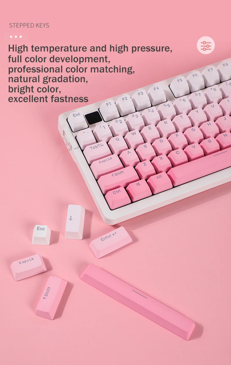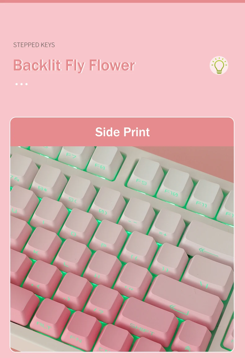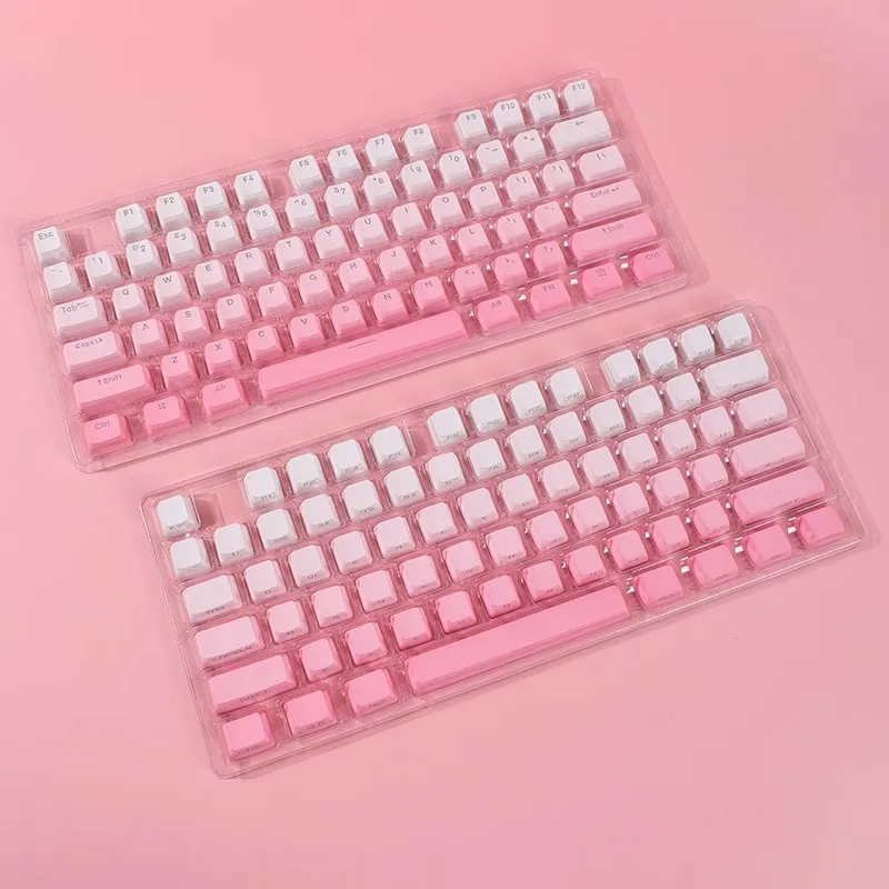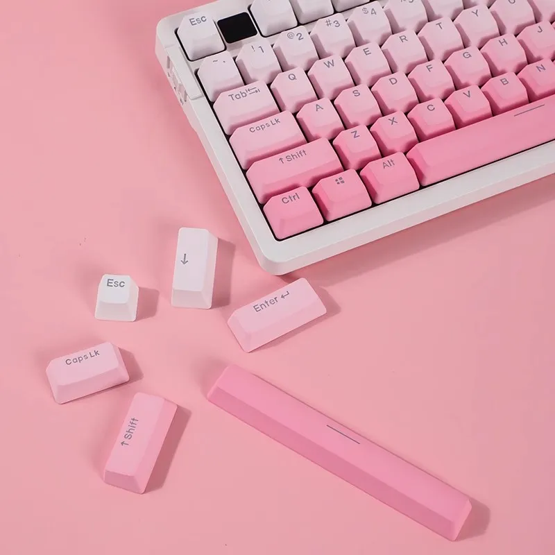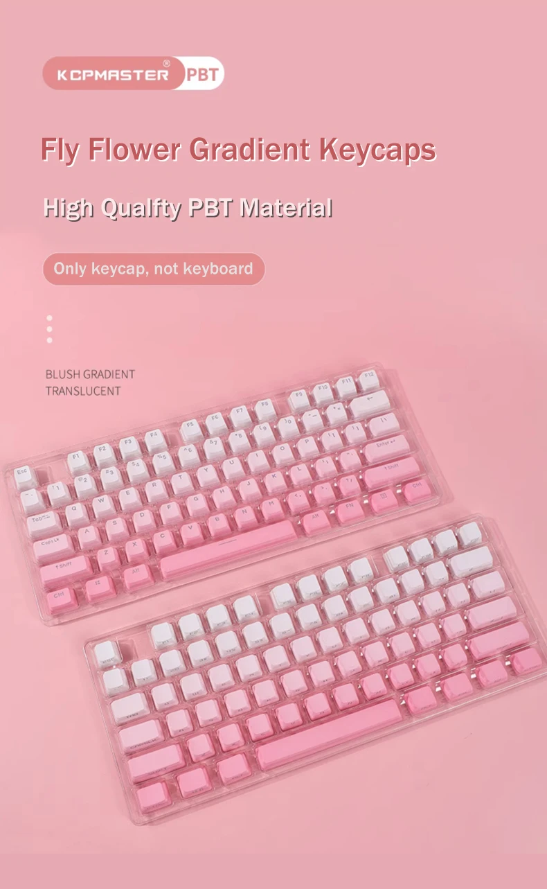 Comprar Tapas de tecla gradiente Fly Flower, perfil OEM, tapa de tecla transparente retroiluminada, impresión lateral/superior PBT para teclado mecánico GK61 87 1