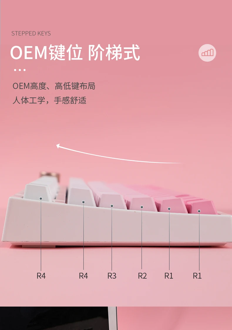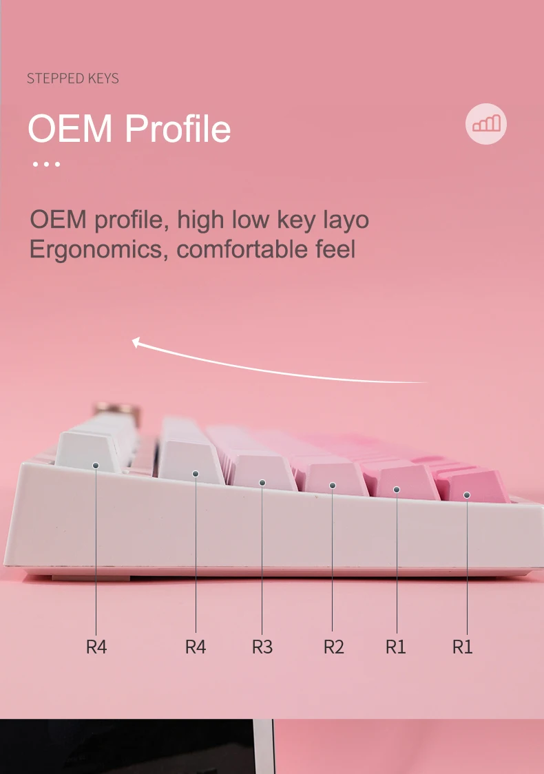 La versión retroiluminada superior de 123 teclas incluye CAMBIO DE 1.75U, barra espaciadora de 6.25U, es compatible con 61 、 64 、 68 、 84 、 87 、 96 、 980 、 104 、 108, etc. diseño de teclado mecánico con interruptores MX