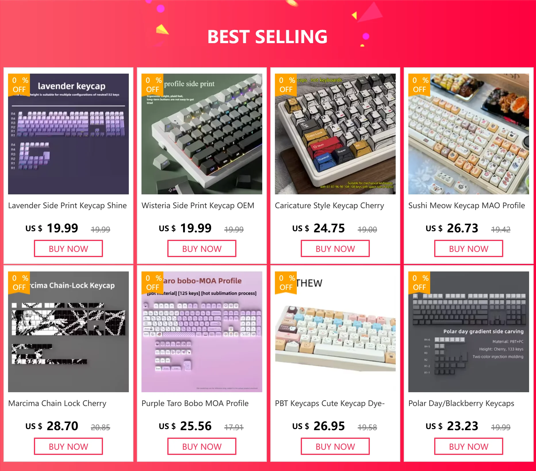 Comprar Tapas de teclado mecánico Kawayi Keycap MOA Perfil PBT Sublimación de tinte