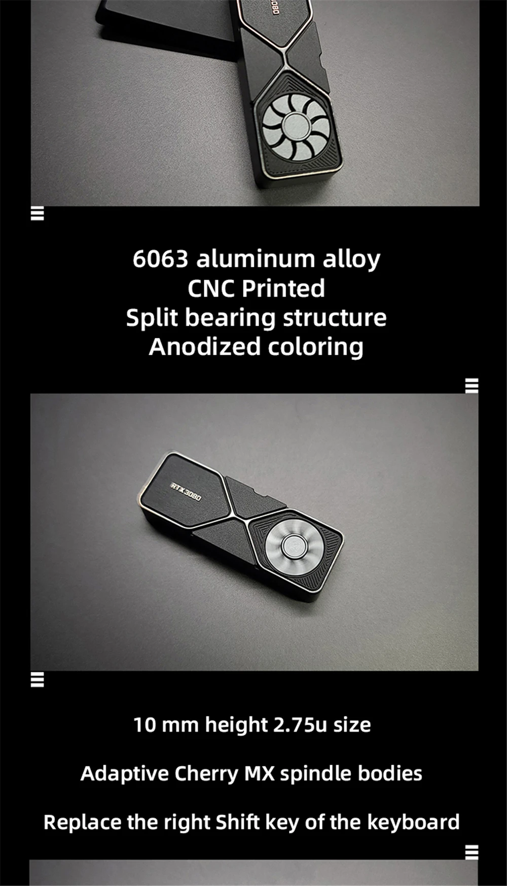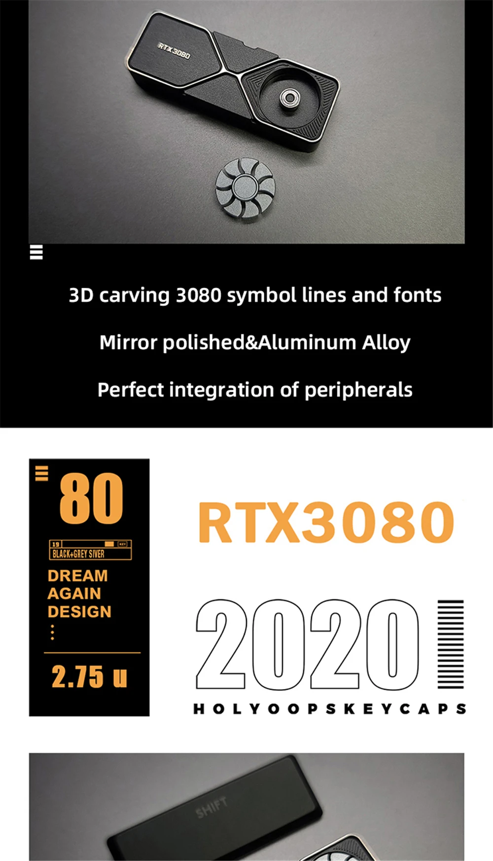 Comprar Tapas de teclas RTX3080, tapa de teclado de cambio, NVIDIA 3080, figura de tarjeta gráfica, Gamers DIY, PC MOD, Gamer rotativo 2.75U, Metal y aluminio