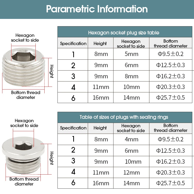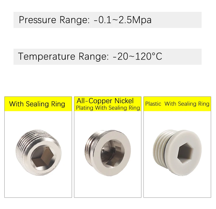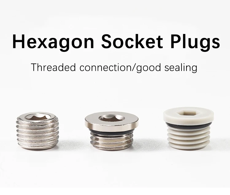 Tapón Hexagonal interior de latón, 10 piezas, M5, 1/8, 1/4, 3/8, 1/2, con anillo de sellado, tapa de extremo de hierro para enchufe de plástico neumático