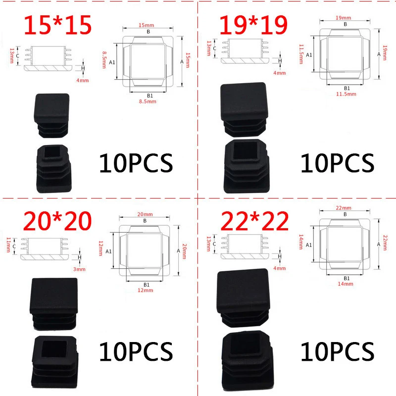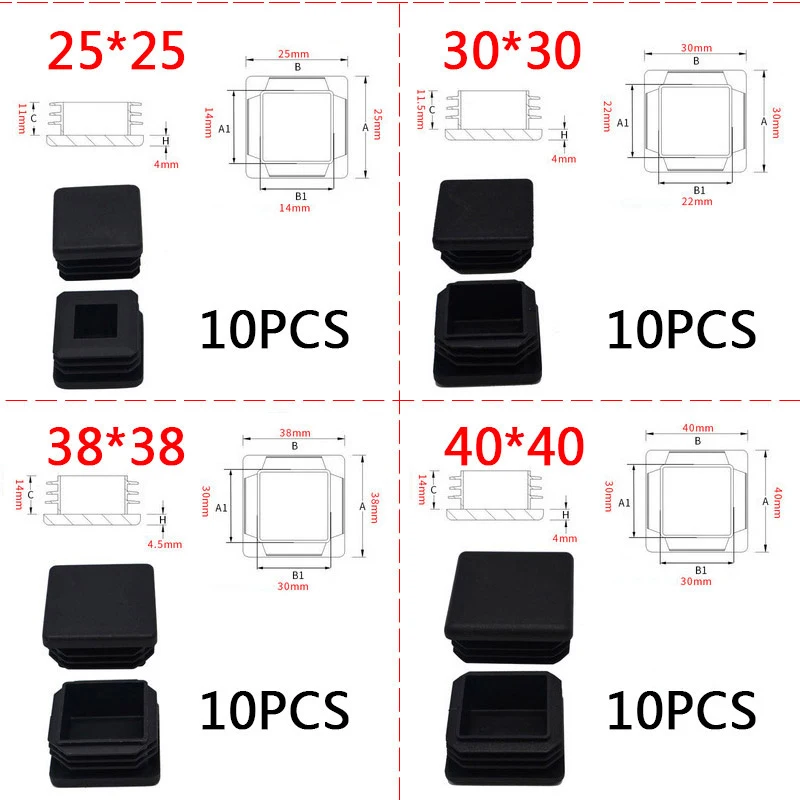 Comprar Tapón de tubo cuadrado de acero, almohadilla de plástico para muebles, pies antideslizantes, 10 piezas