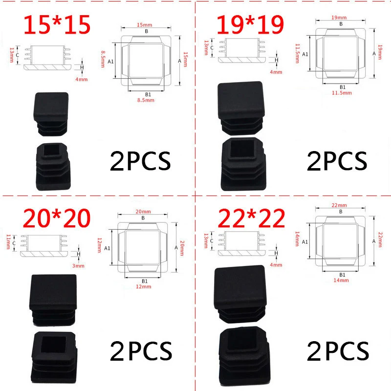 Comprar Tapón de tubo cuadrado de acero para muebles, Protector de pies antideslizante, tapa de tubo, color negro, 2 unidades