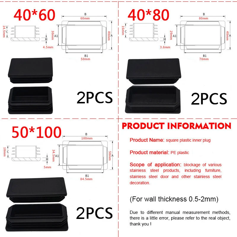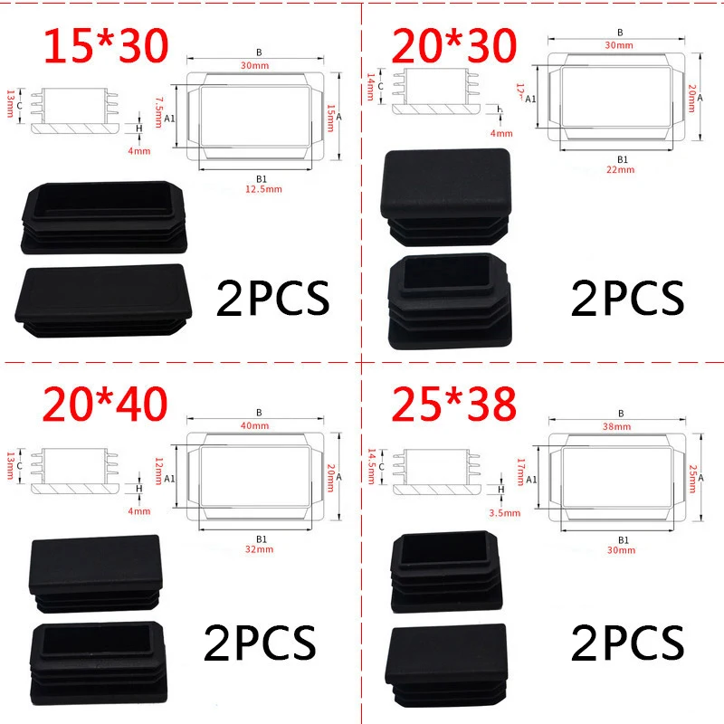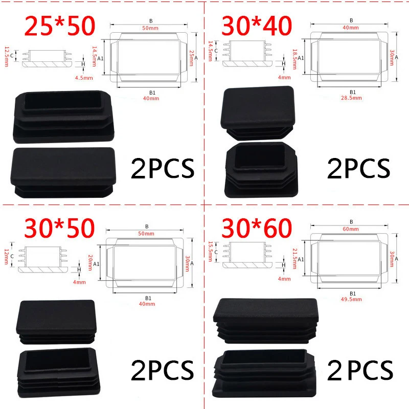 Comprar Tapón de tubo rectangular de plástico y acero, almohadilla protectora antideslizante para patas de muebles, color negro, 2 unidades