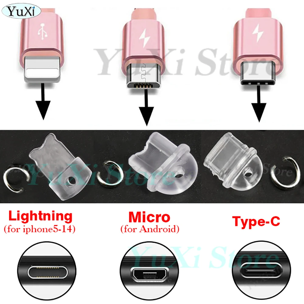 Tapones antipolvo para puerto de carga, 10 Uds., para Micro puerto iOS tipo C, decoración DIY, tapones antipolvo, tapones protectores transparentes