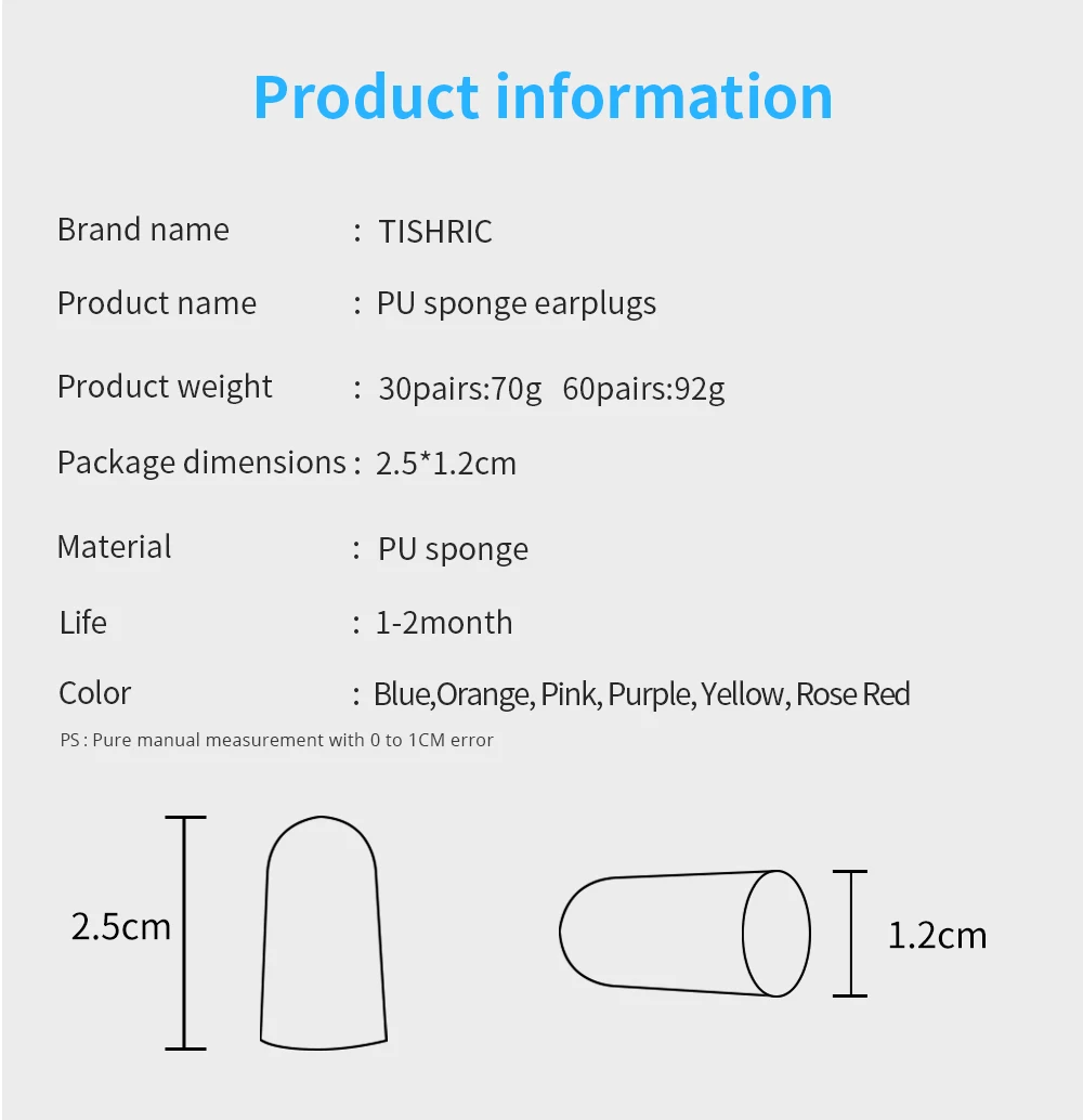 Comprar Tapones insonorizados de esponja TISHRIC para los oídos, reducción de ruido, 35,5db, 30 pares