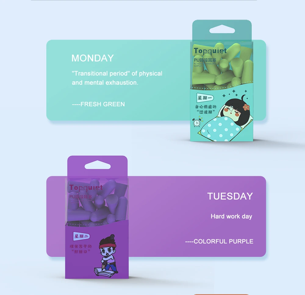 Comprar Tapones para los oídos de PU para dormir, protectores para los oídos de 35,3 db, antirruido, 30 piezas, en caja, serie One Week
