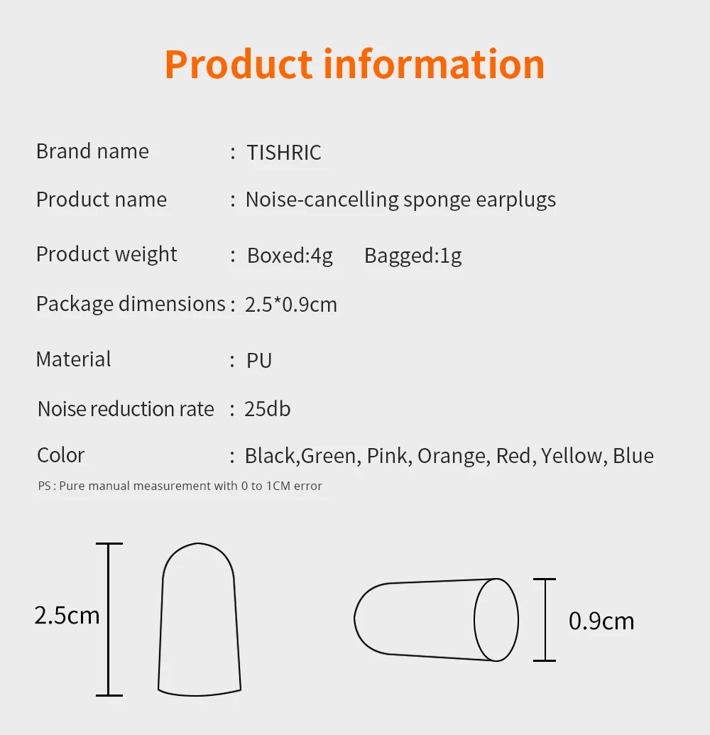 10 pares de tapones para los oídos tishic Boxe tapones para los oídos con reducción de ruido esponja Anti ruido 25dB tapones para los oídos con cancelación de ruido para dormir