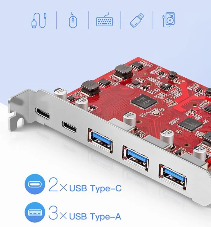 Super Speed 3 puertos USB 3,0 + 2 puertos Tipo-c PCIE PCI Express Adaptador de tarjeta de control Panel frontal