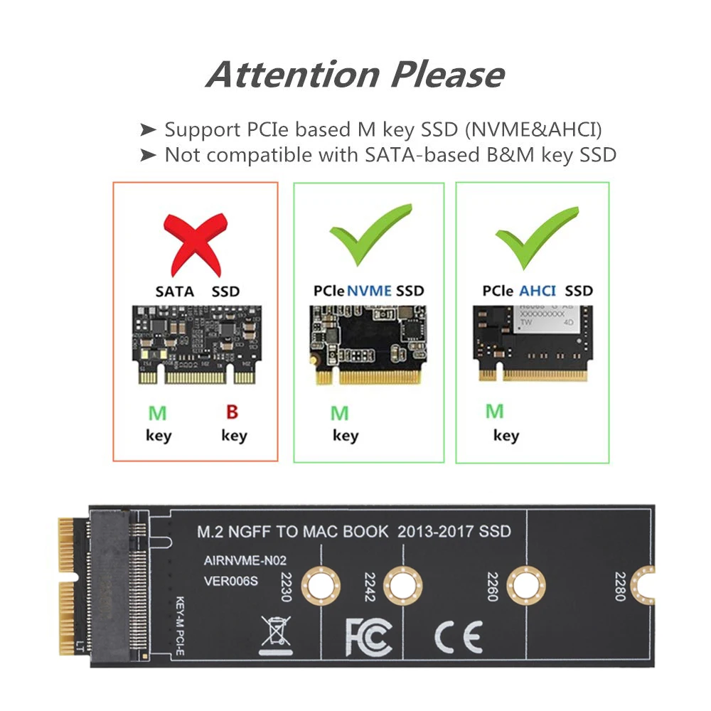 Comprar Tarjeta adaptadora de conversión M.2 NVME SSD para MacBook Air Pro Retina 2013-2017 NVME/AHCI SSD, Kit actualizado para A1465 A1466 A1398 A1502