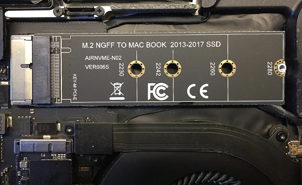 Este adaptador de conversión M.2 PCIe nVME SSD permite actualizar SSD para MacBook 2013-2015 con SSD NVME de gran capacidad.