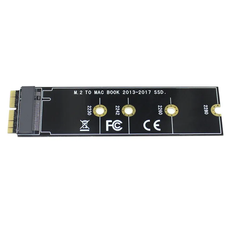 Esta tarjeta adaptadora admite 2280 PCIE X4 y PCIE X2 protocolo M.2 NGFF SSD unidades de estado sólido para convertirse en 2013 2014 2015 versión Apple MacBook AIR y PRO A1465 A1466 A1502 A1398. PCIE X4 M.2 NGFF SSD se divide en el Protocolo AHCI y el Protocolo NVMe. Los compradores de nivel principiante utilizan discos duros de protocolo PCIe x2 o X4 AHCI. Los compradores con una gran experiencia práctica pueden usar el protocolo NVME PCIe X4 M.2 NGFF. Instalación SSD. Con respecto a si usar el disco duro de protocolo AHCI o el disco duro de protocolo NVME, este es su propio problema técnico y no tiene nada que ver con la tarjeta adaptadora. ¡Los compradores novatos recomiendan Comprar PCIe X4 M.2 NGFF AHCI SSD para usar esta tarjeta adaptadora!