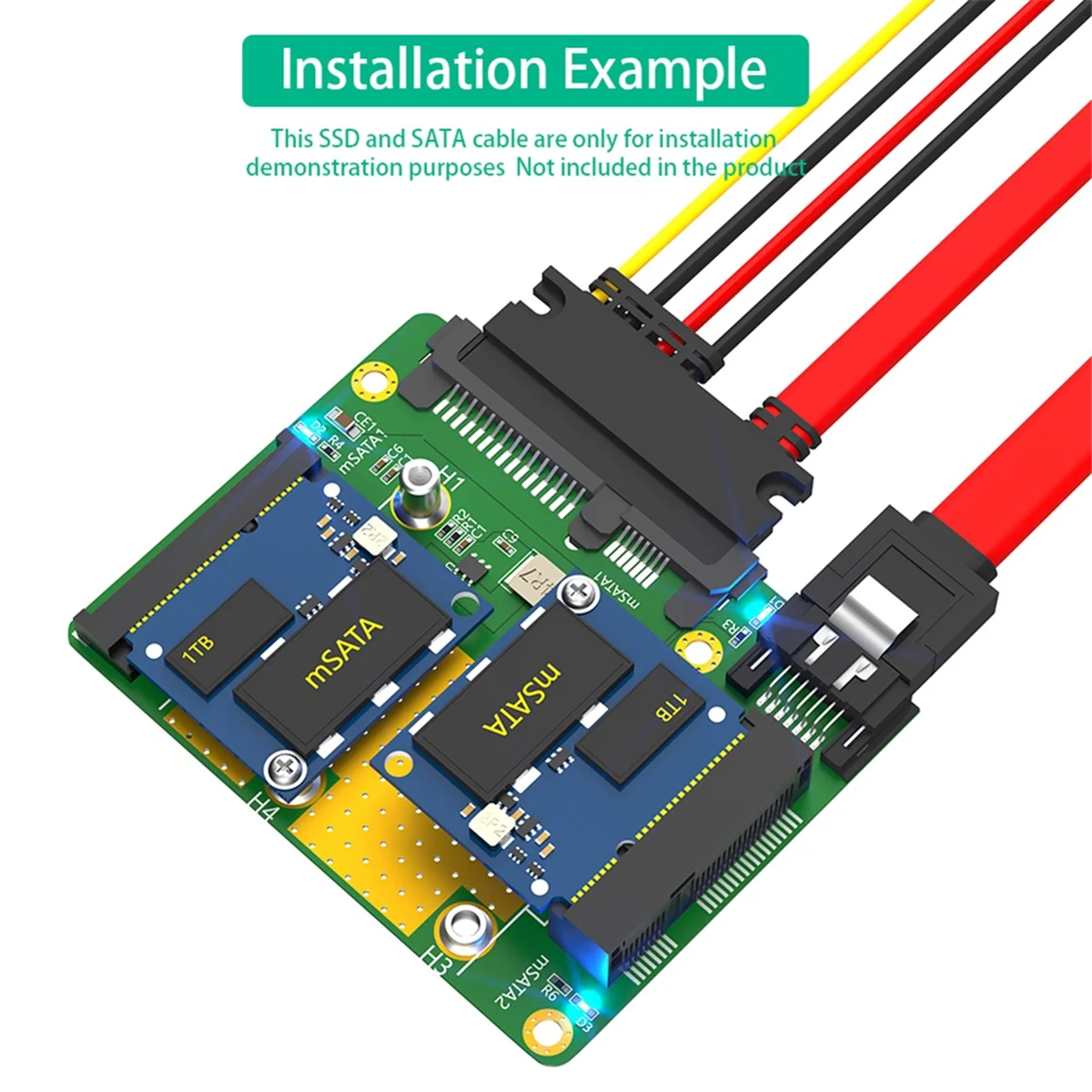 1. Los SSD duales mSATA pueden funcionar al mismo tiempo 2. Permite al usuario utilizar SSD SATA-IO mSATA estándar a disco duro SATA en el escritorio. 3. Admite interfaz de almacenamiento masivo SATA3/6 Gbps de alta velocidad. 4. Admite SSD msata de tamaño medio (25x30 mm) y tamaño completo (50x30 mm) a SATA3. 5. Compatible con Windows 7/8/10, servidor Windows 2008//2012 o Linux. Nota: Debido a los diferentes lotes de fábrica, si existen ligeras diferencias en el color y el estilo de los accesorios, no afecta el uso. Color: como se muestra Material: plástico Contenido del paquete: 1 x adaptador dual Msata SSD a doble SATA3 4 tornillos M2 1 destornillador 1 cable de señal SATA de 7 pines. Solo el contenido del paquete anterior, otros productos no están incluidos. Nota: Los reflejos de la luz y las diferentes pantallas pueden hacer que el color del elemento en la imagen sea un poco diferente al real. El error de medición permitido es +/- 1-3 cm.