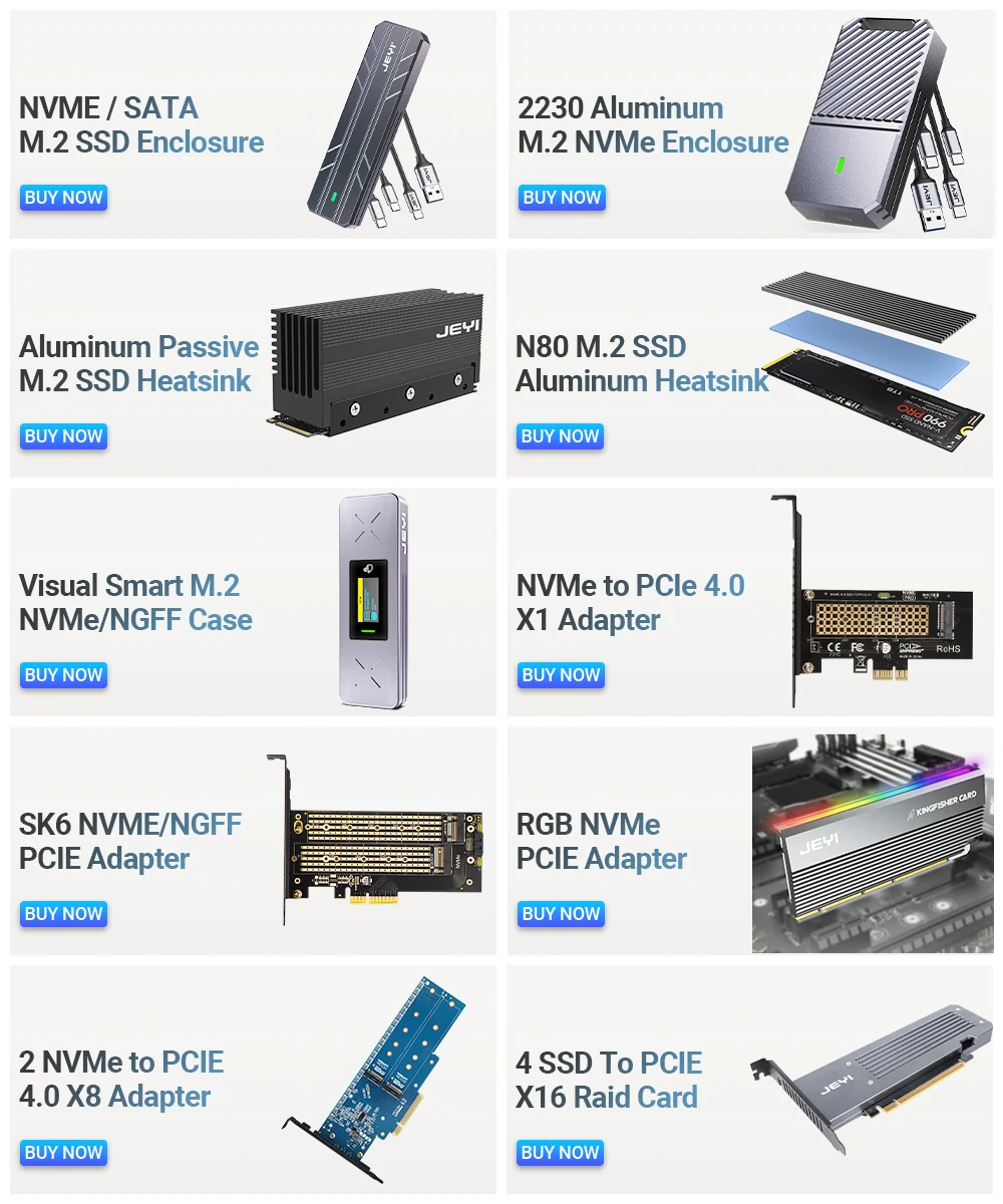 Con este adaptador JEYI M.2 NVMe SSD PCI-E 4.0 X4, puede agregar un SSD NVME a su placa base sin ranura M.2.